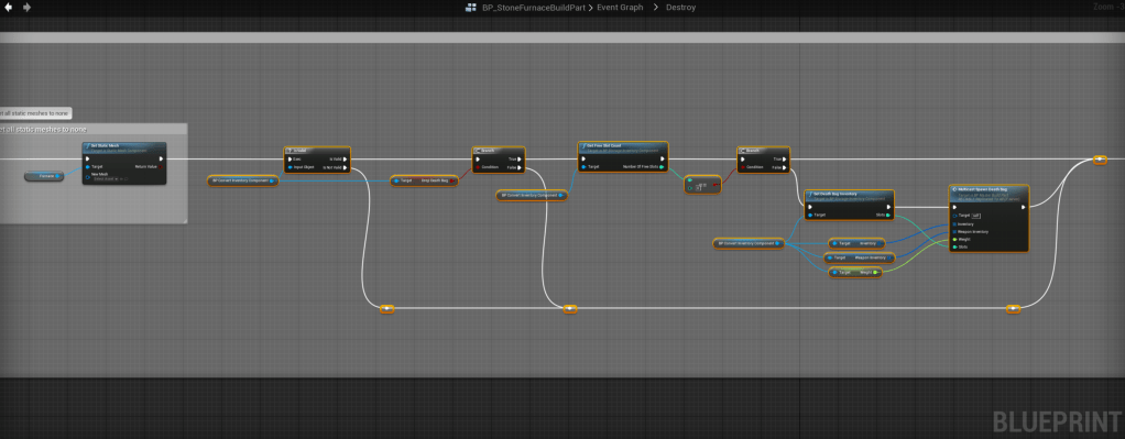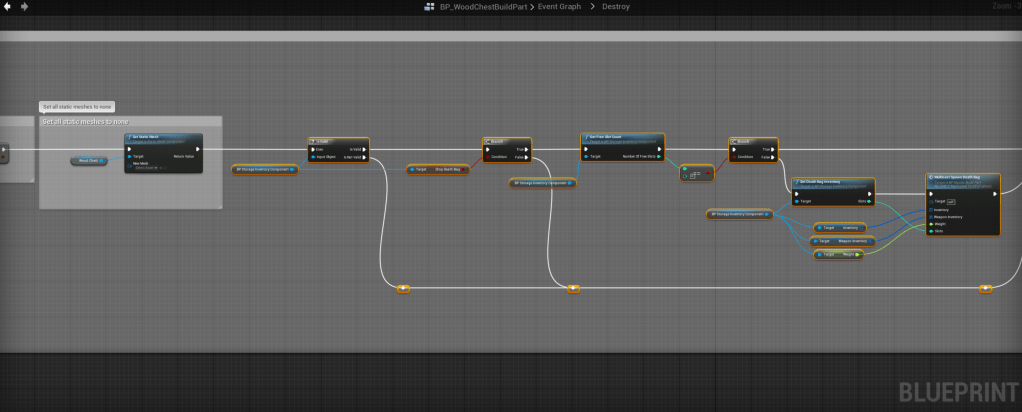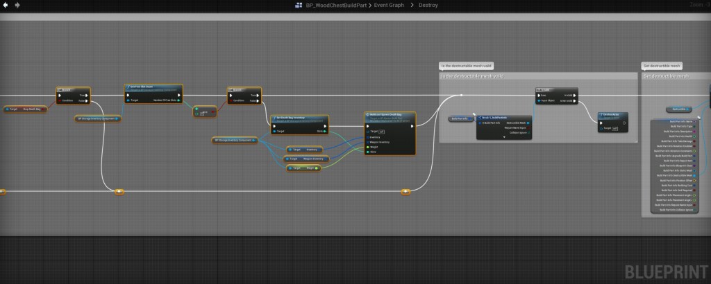Next go to the BP_WoodChestBuildPart to the Destroy collapsed nodes. Then add the highlighted nodes shown in the image below, I have split the images in 2