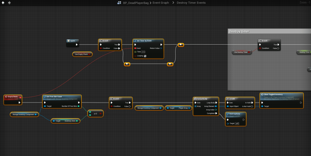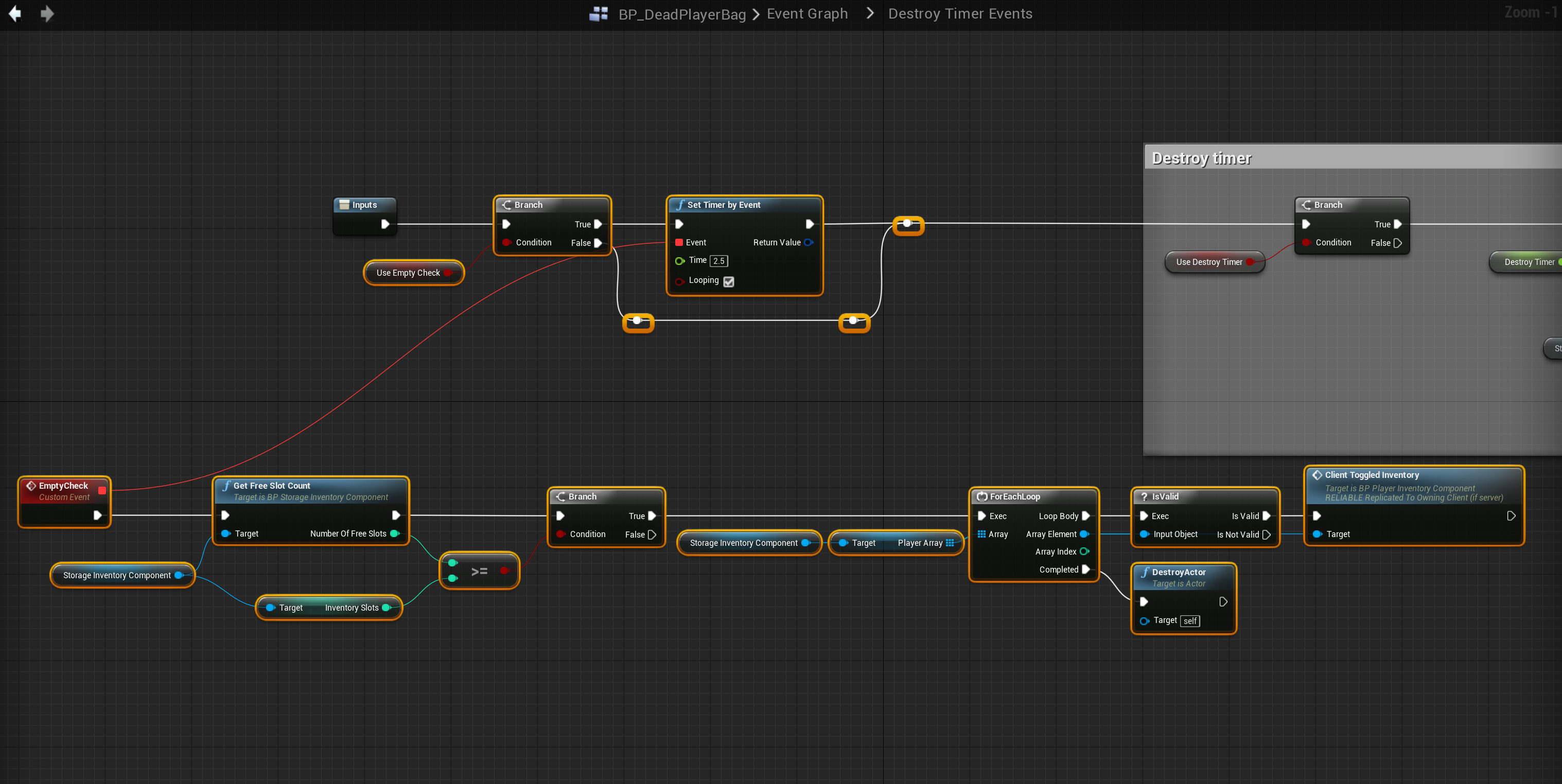 Go to the BP_DeadPlayerBag and create a new Bool variable called Use Empty Check and if you want the death bag to destroy once empty set its default value to True