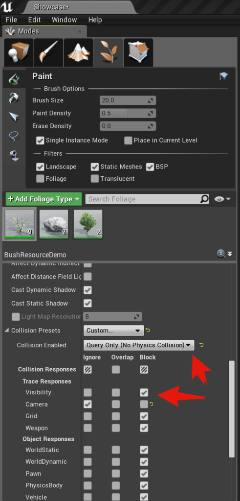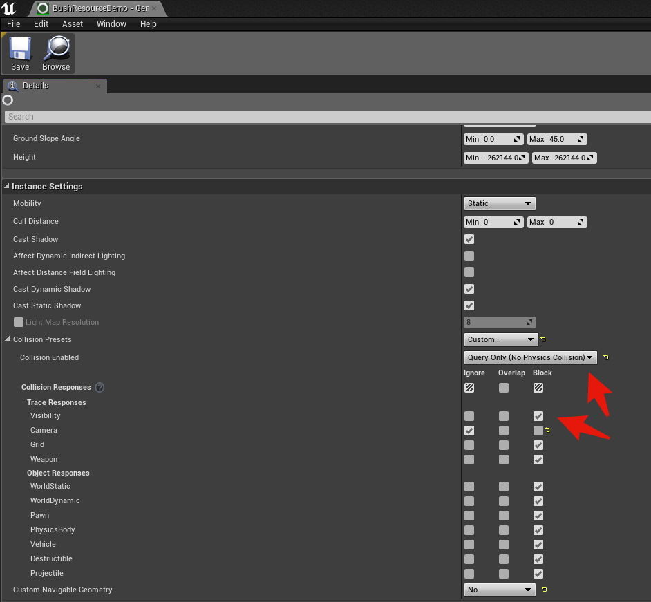 SGK – Fix bush collision Make the changes shown in the screenshot below, location at the top of the screenshot. If a setting is already set to what the images show then just leave it at that setting.