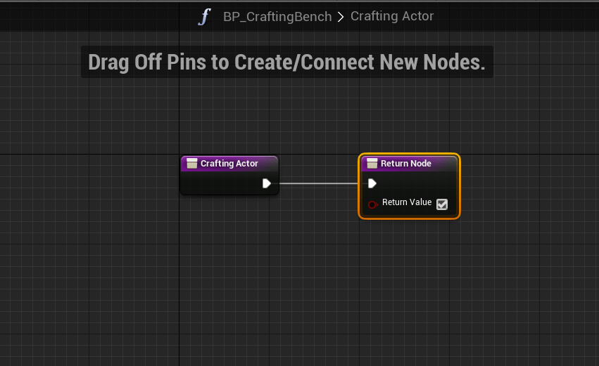 Next go to the BP_CraftingBench and find the CraftingActor function in the Interfaces tab in the My Blueprint panel. Then copy the image below.