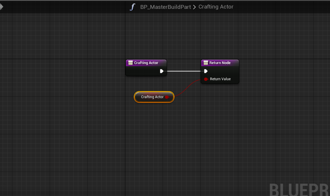 Next go to the BP_CraftingBench and find the CraftingActor function in the Interfaces tab in the My Blueprint panel. Then copy the image below.