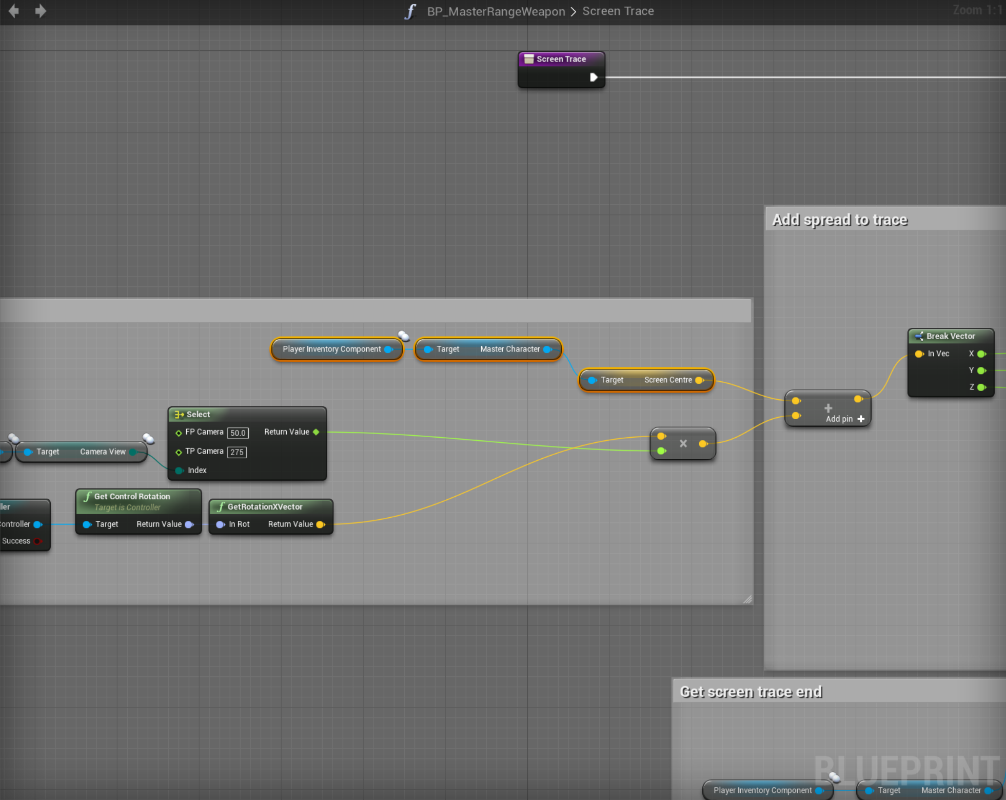 Create a new variable called “Screen Centre” type vector in the BP_MasterCharacter.