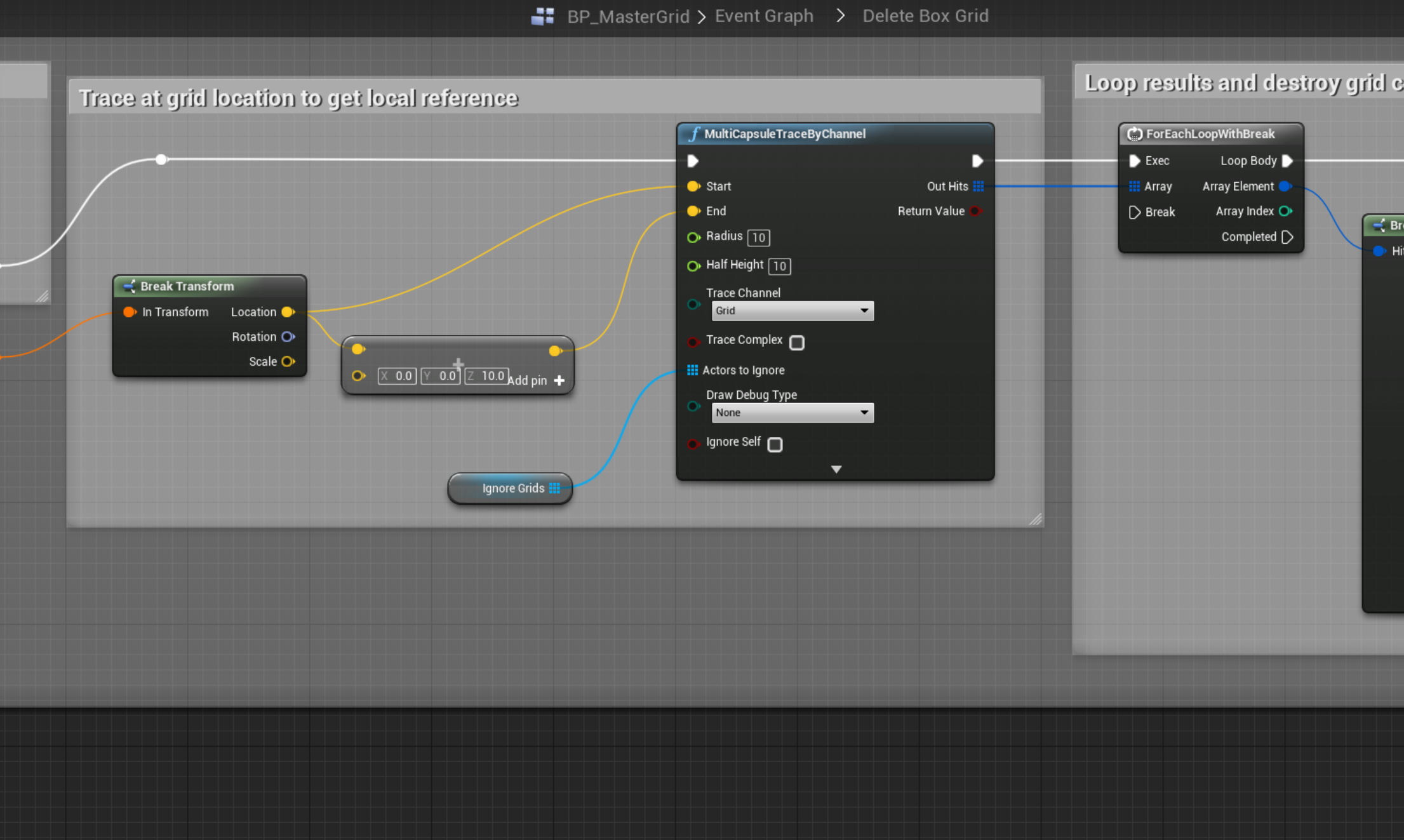 Then go to the BP_MasterGrid and select the highlighted node and copy the collision settings in the image below.