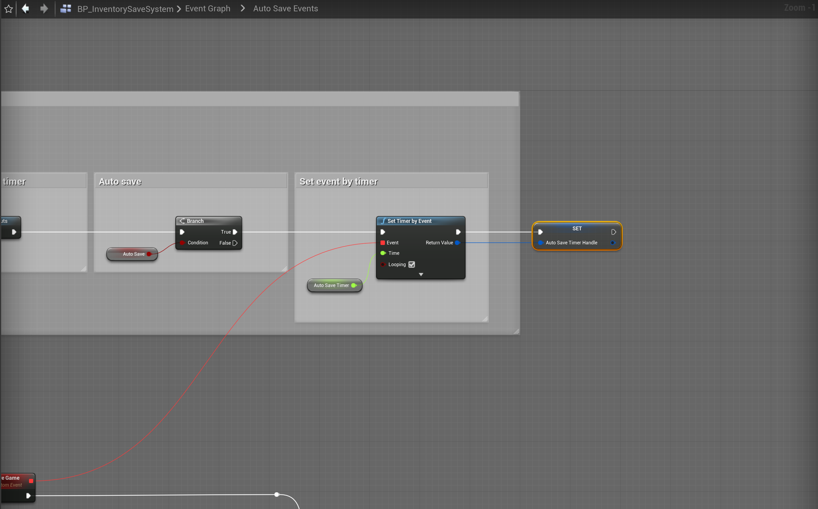 Go to the BP_StorageInventoryComponent and compile the blueprint. Then go to the BP_InventorySaveSystem and create a new variable called Auto Save Timer Handle and set the variable type to Timer Handle.