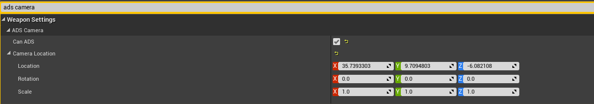 And then go to the BP_P1911 in the class defaults set the Camera location to like the image below. Note make sure rotation is 0,0 in X,Y,Z