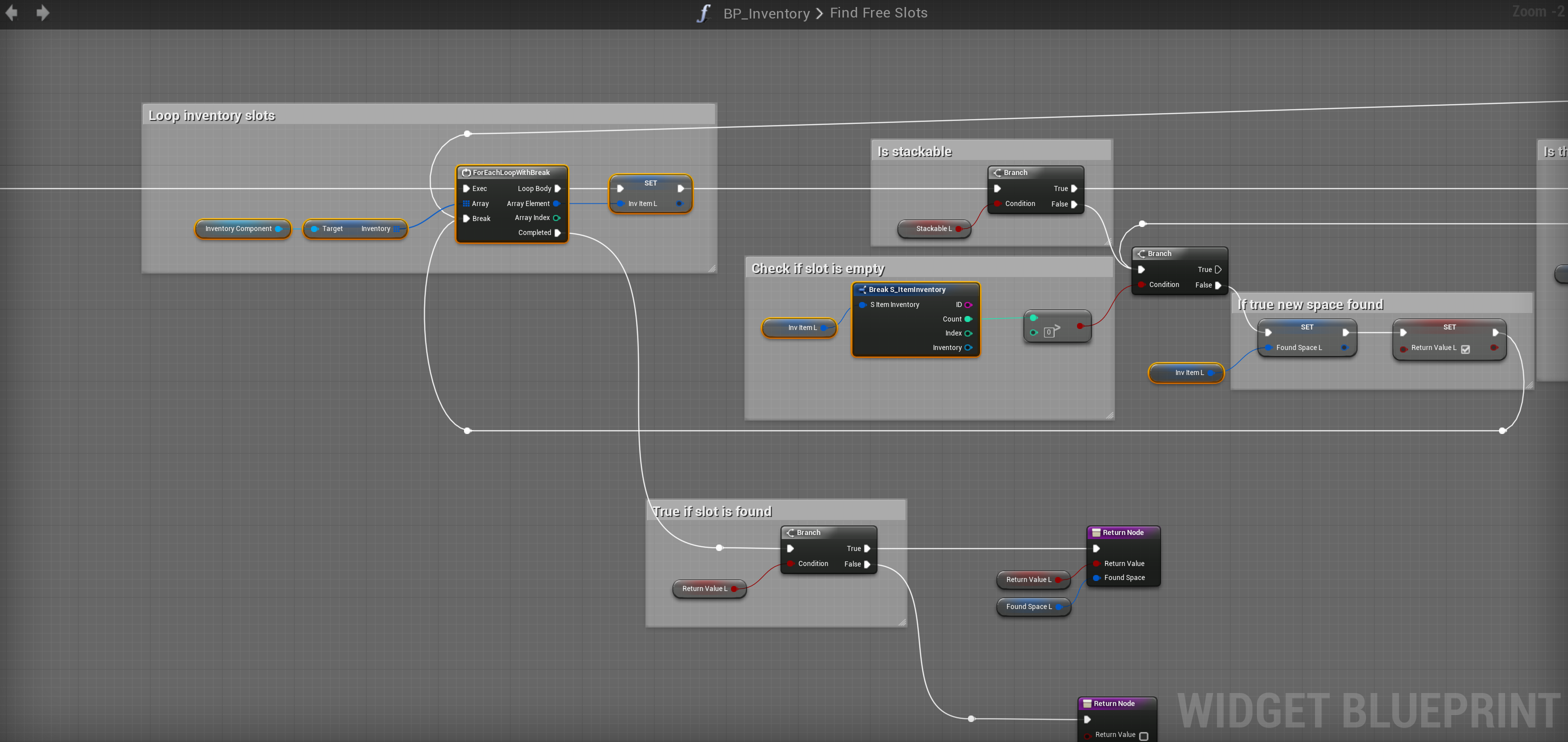 SGK – Fixed shift click move item to inventory Go to the BP_Inventory then to the Find Free Slots function and create a new local variable called Inv Item L and set the variable type to S_ItemInventory. Next copy the images below, location at the top of the screenshot.