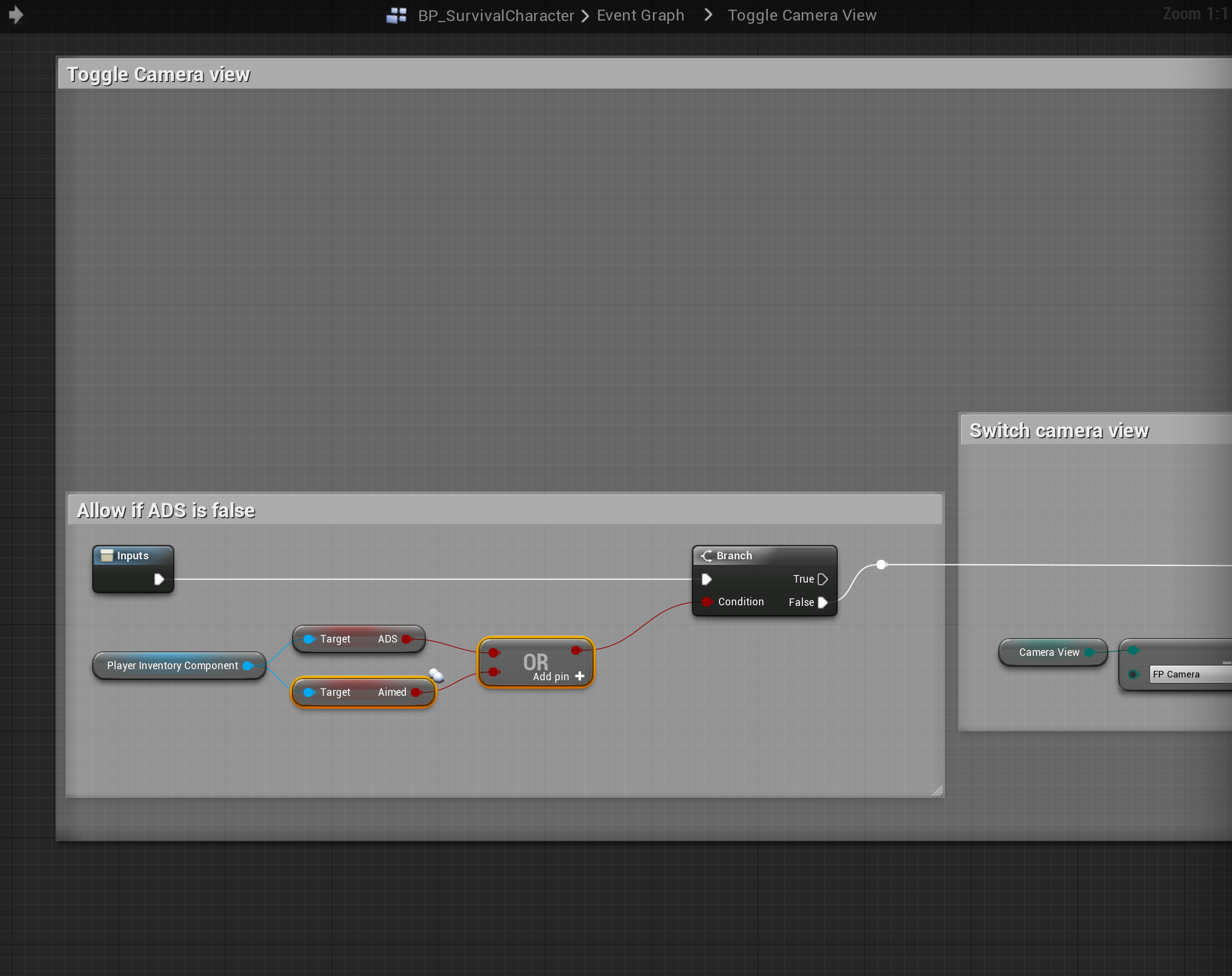 SGK – Fixed switching camera while aimed Add the highlighted nodes shown in the image below, location at the top of the screenshot.