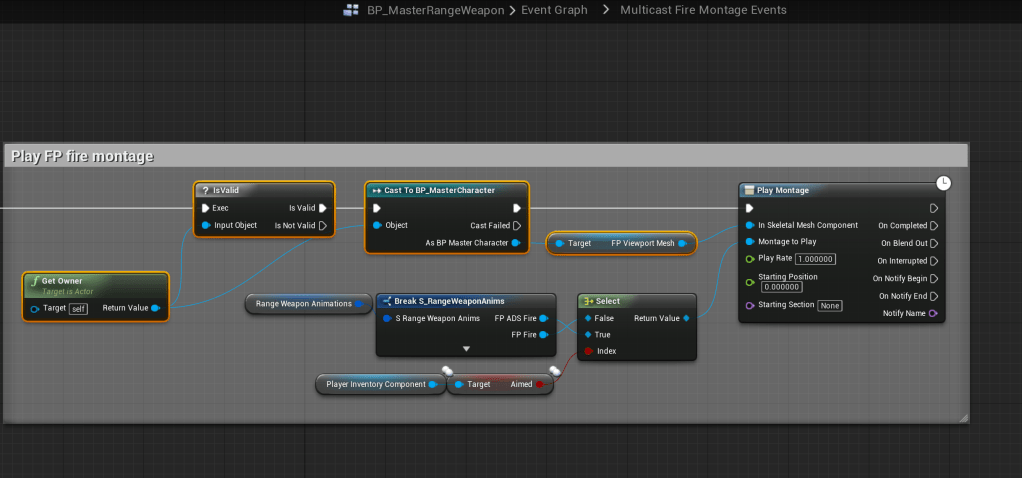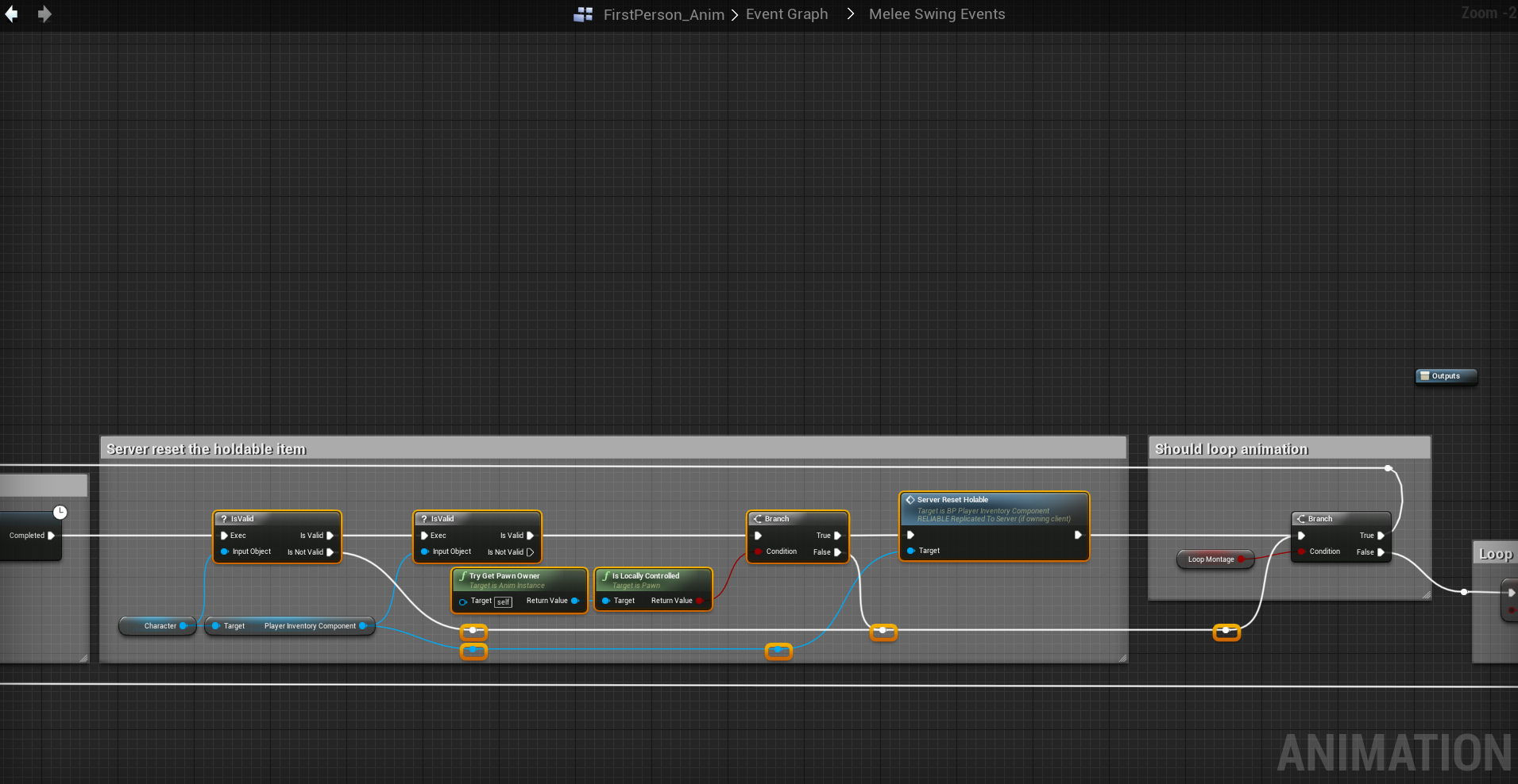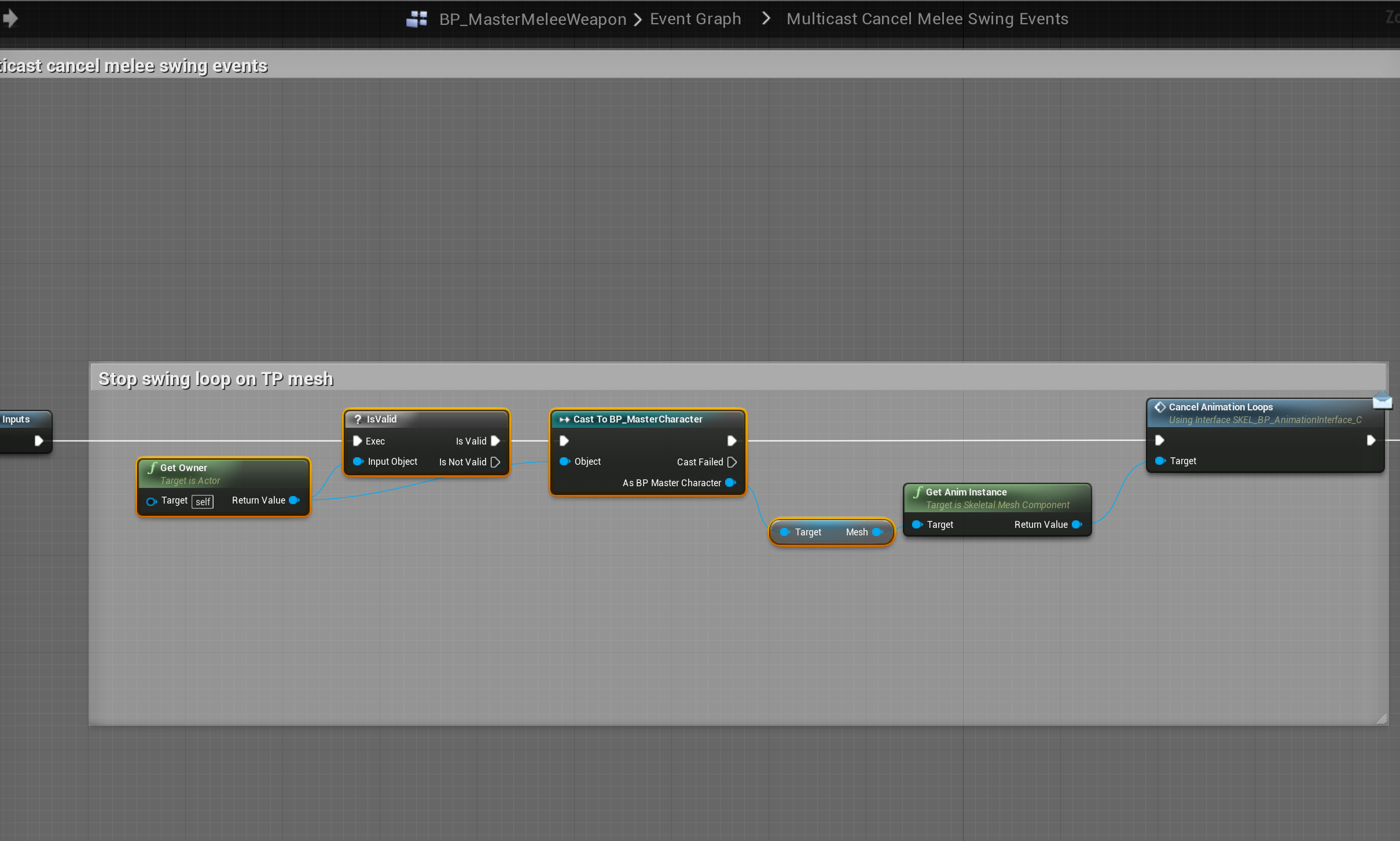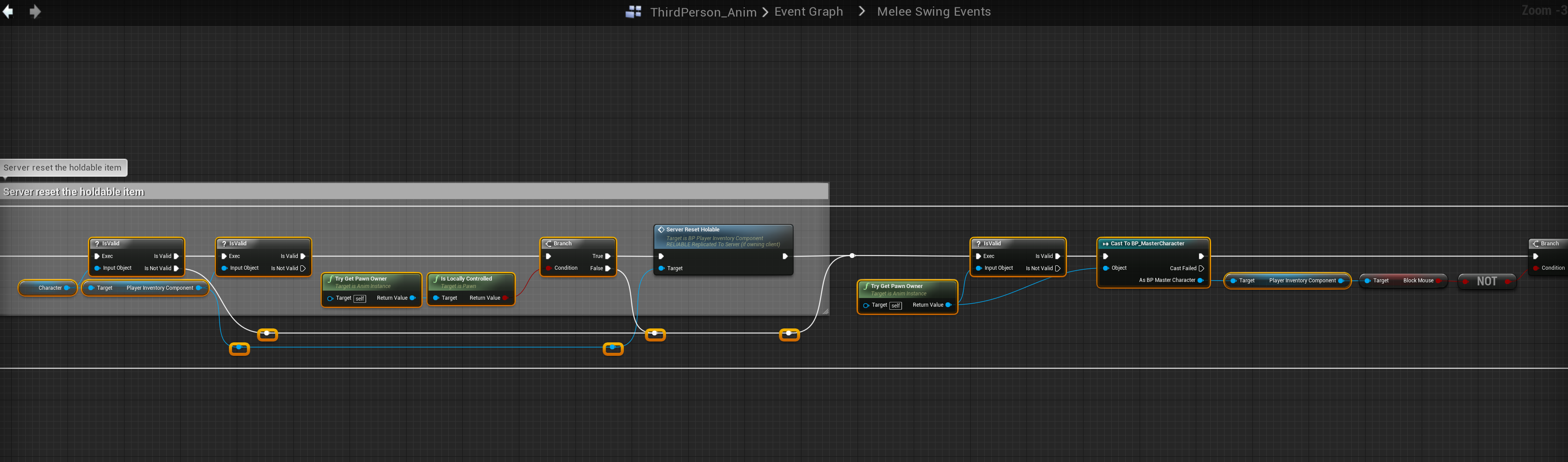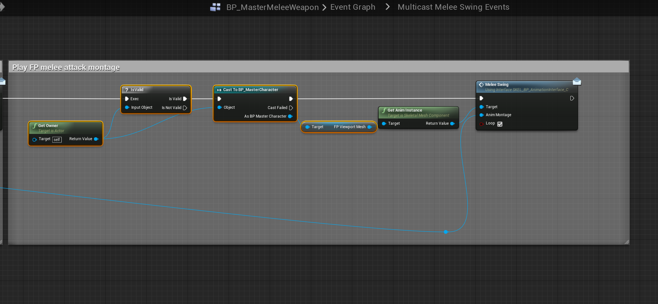 Next go to the BP_MasterMeleeWeapon and add the highlighted nodes shown in the images below, locations at the top of the screenshots.