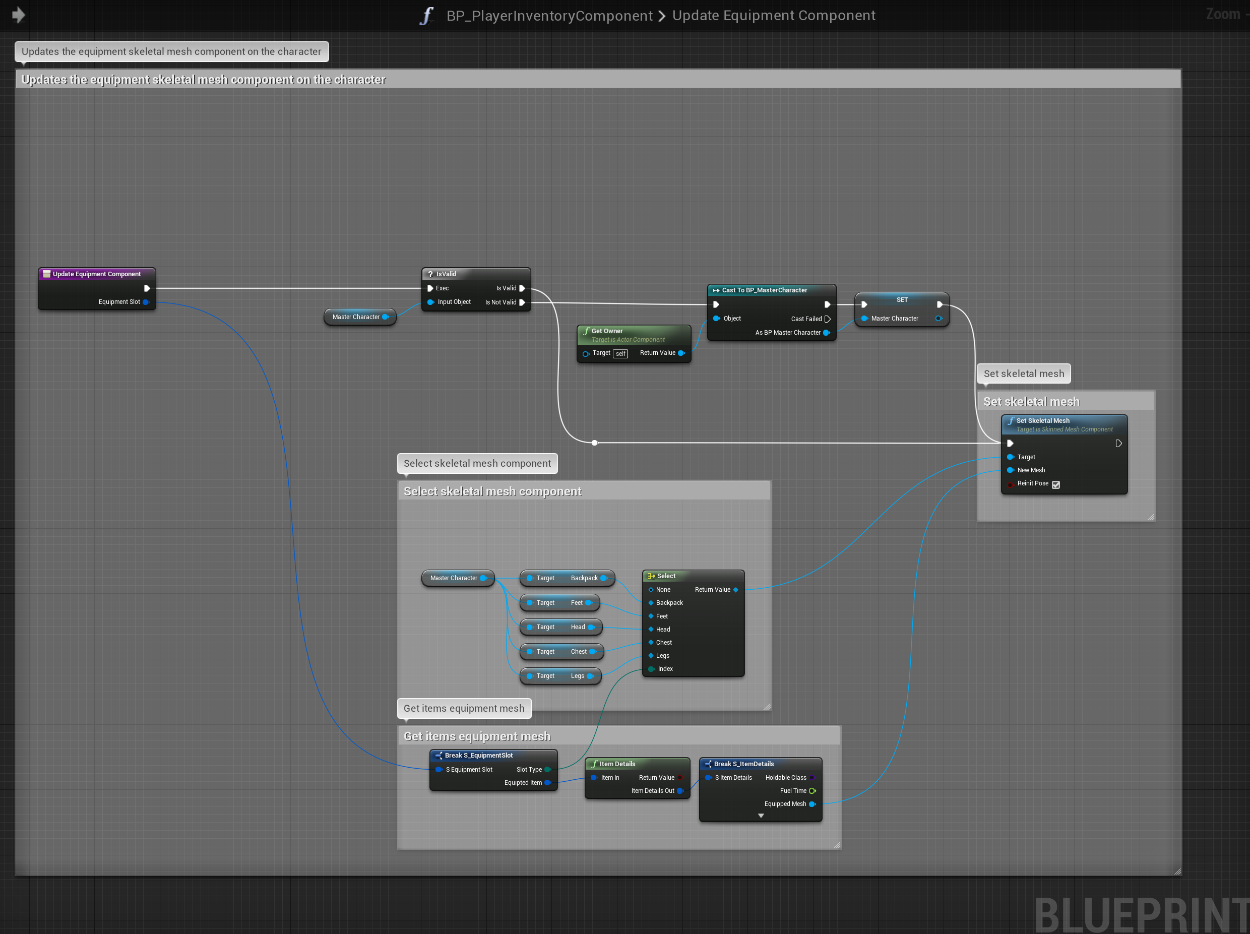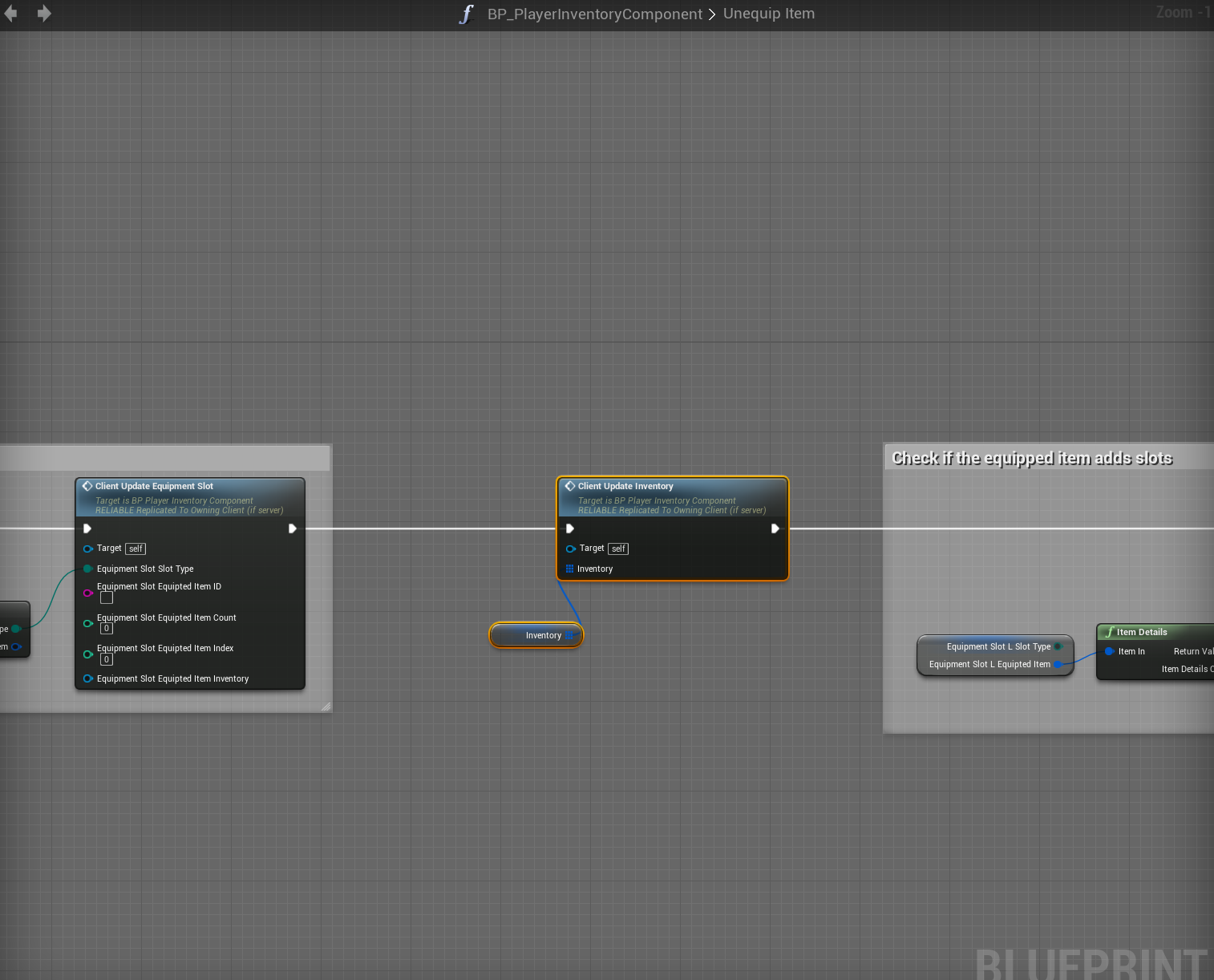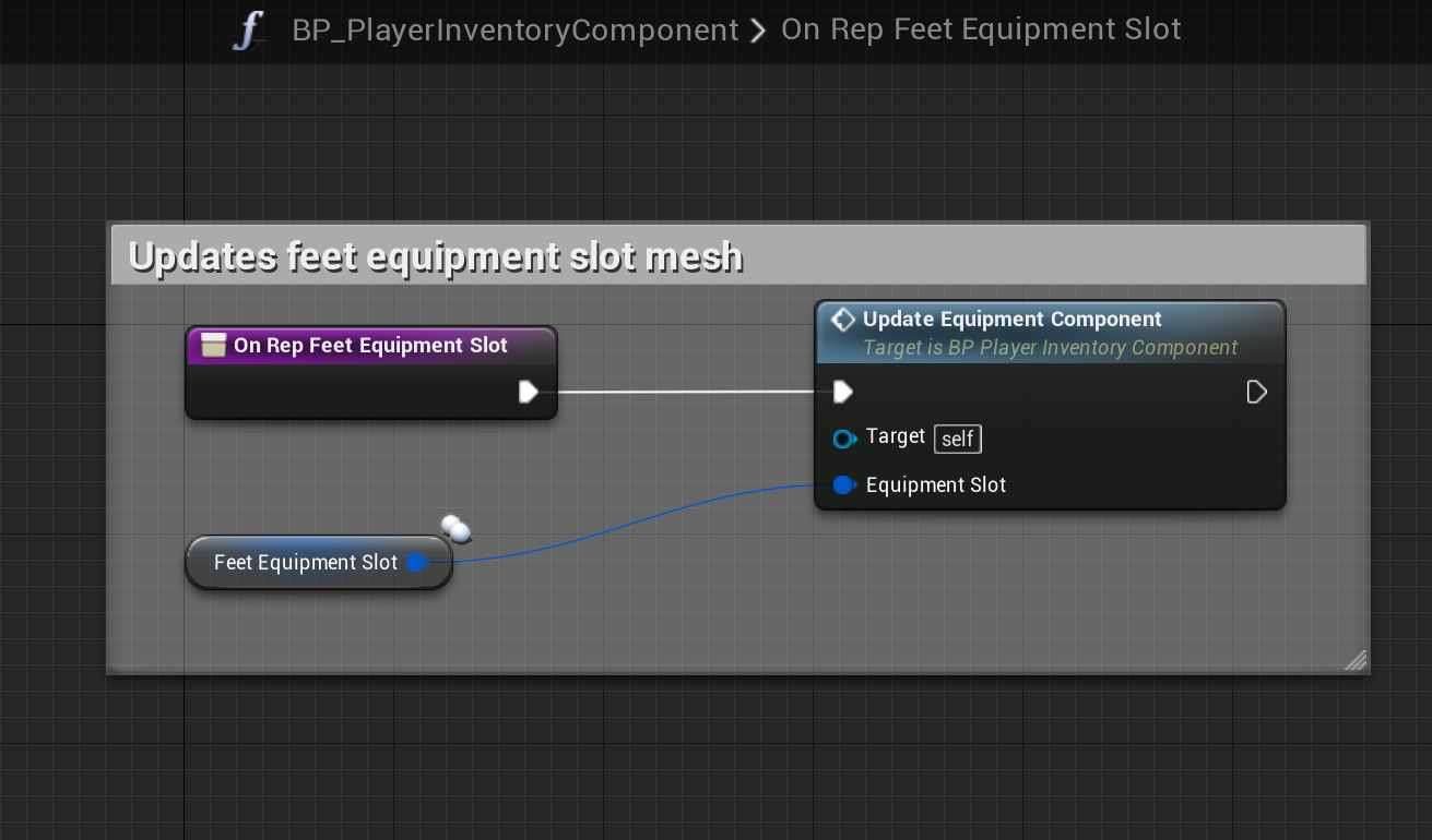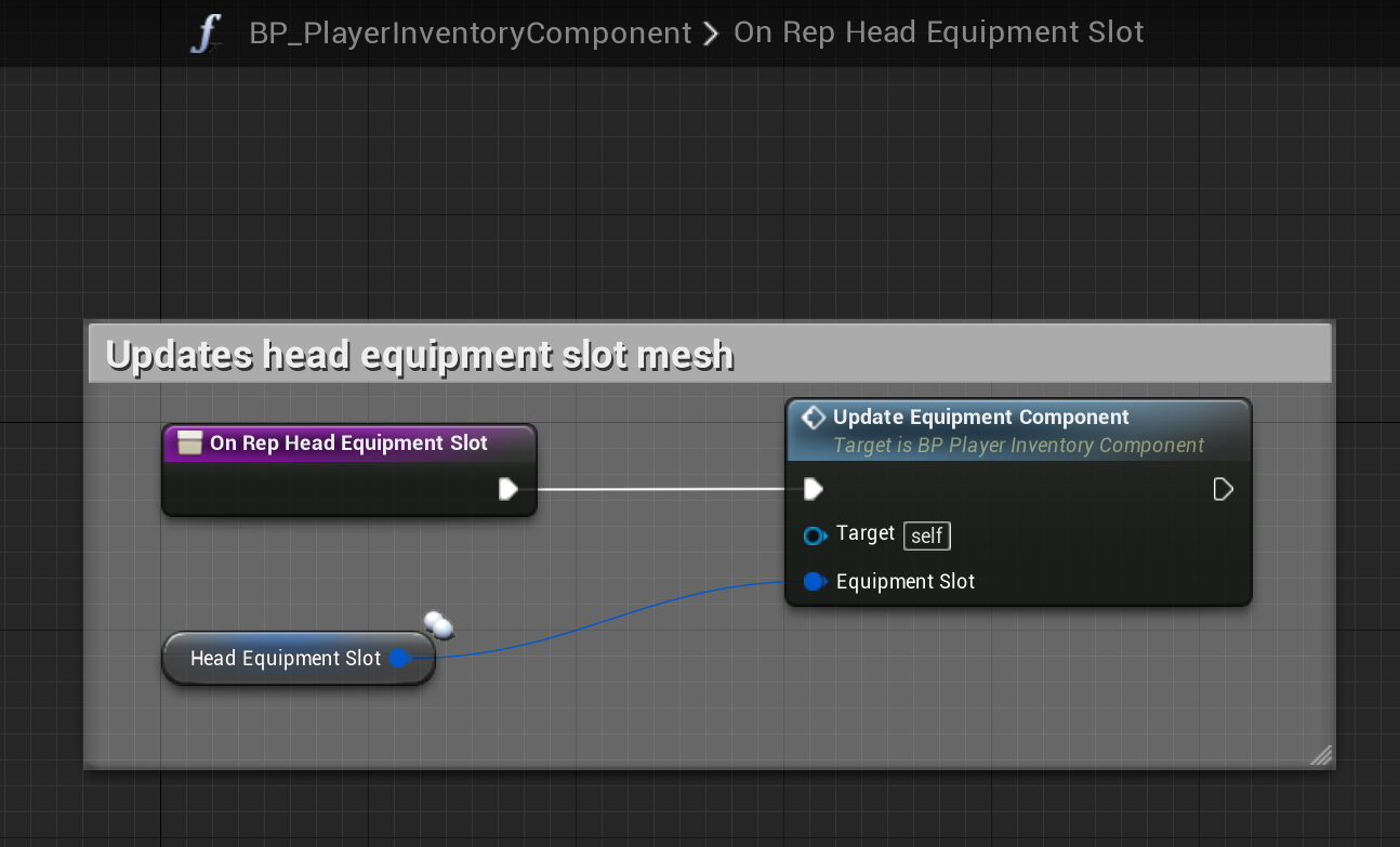 Next using the OnRep_ functions created by the equipment variables copy the images below. If you have your own equipment slots you will need to do the same for that as well.