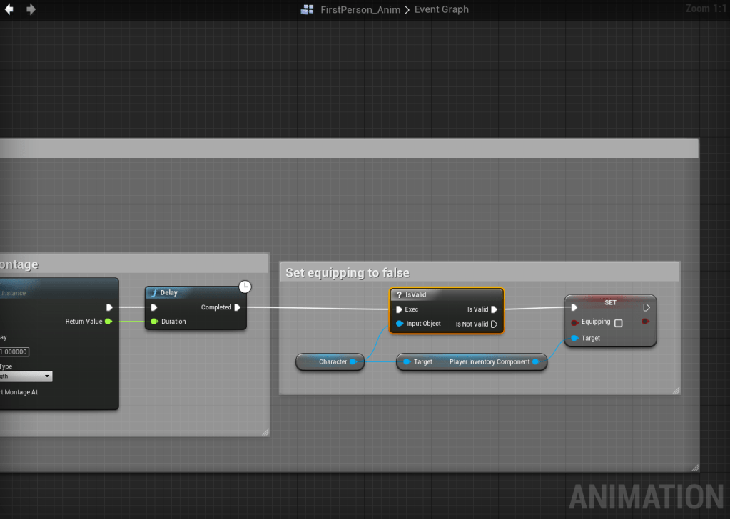 Next go to the FirstPerson_Anim blueprint and add the highlighted node shown in the image below.