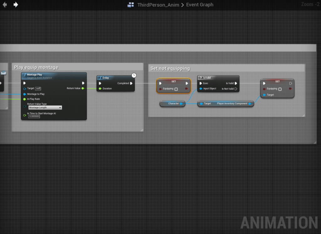 Next go to the ThirdPerson_Anim and compile. Then delete the highlighted node shown in the image below.