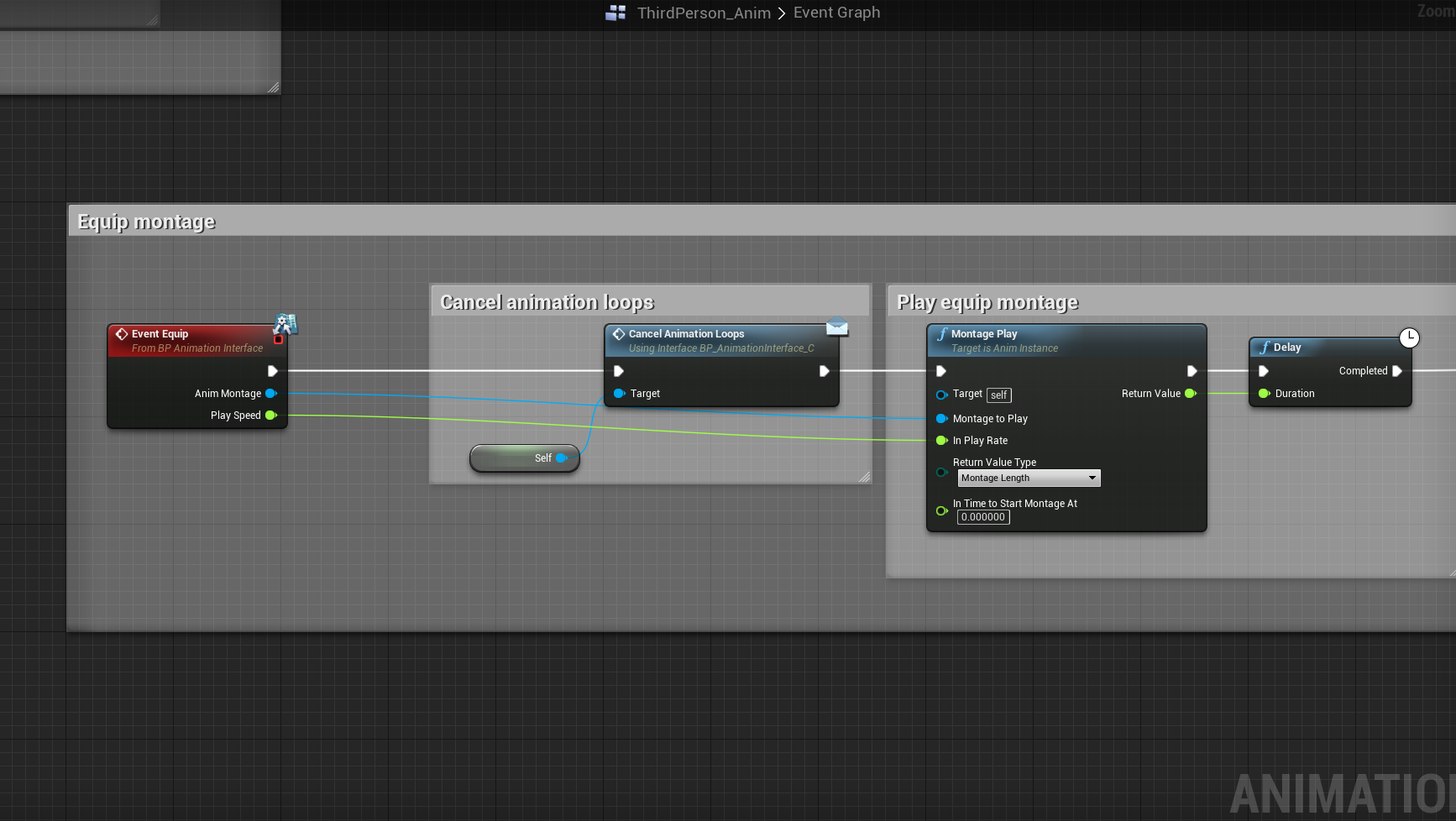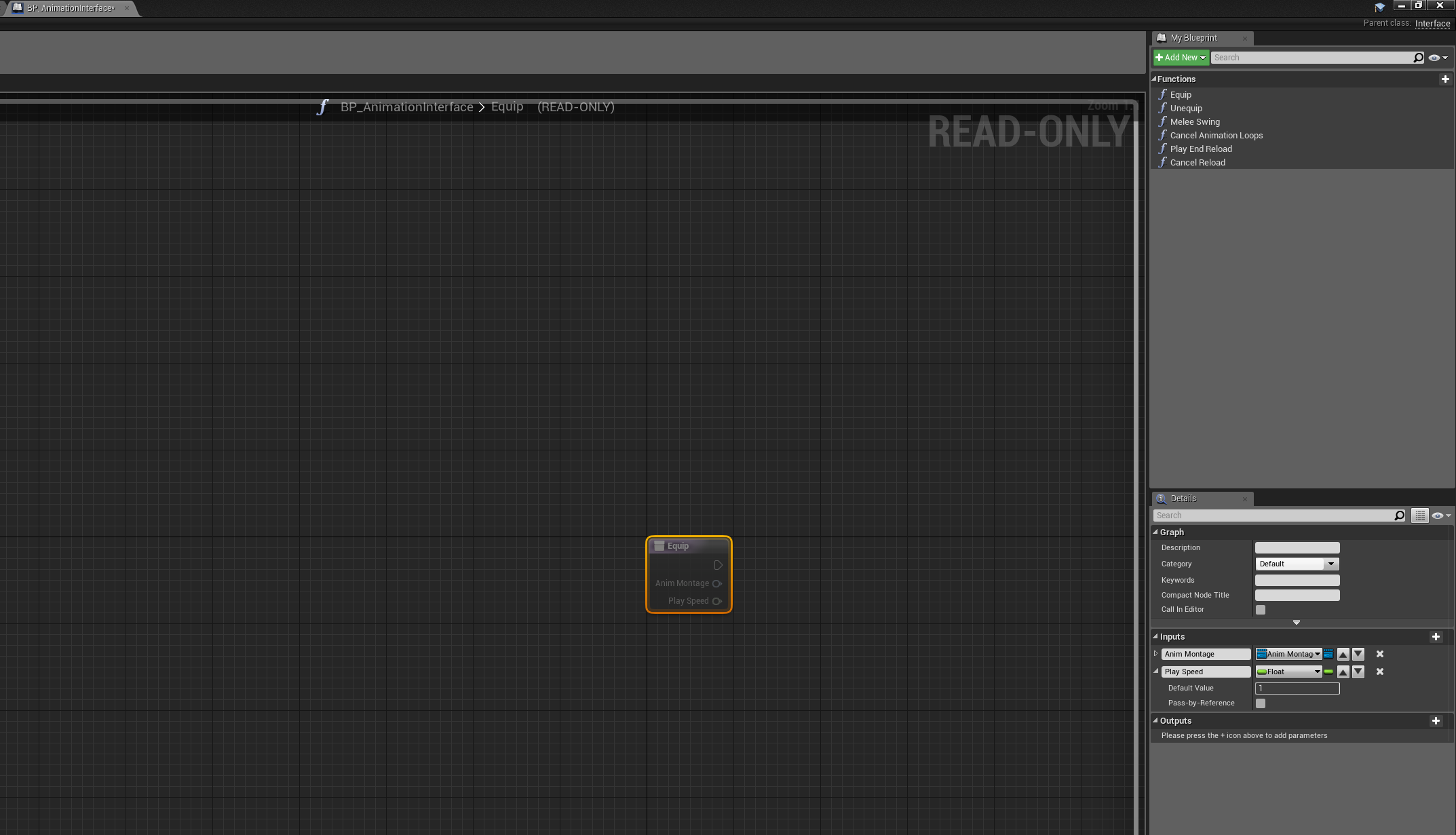 Add this float to the Equip interface event, and make sure you set the default value to 1 like shown in the image above and compile. If you do not do this other animations in the system will not work!