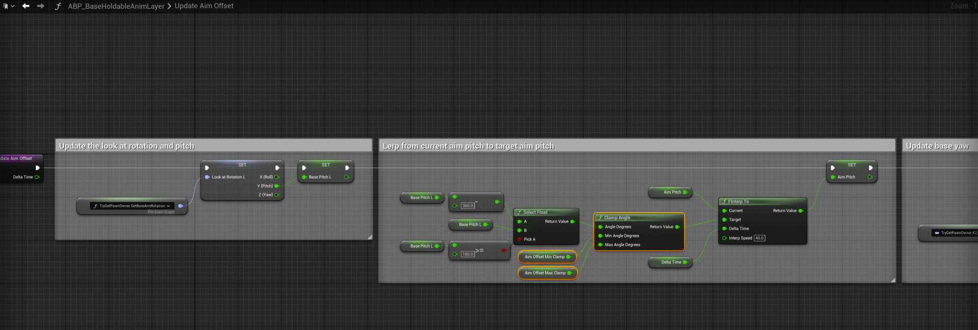 Then open the UpdateAimOffset function and add the highlighted nodes shown in the images below.