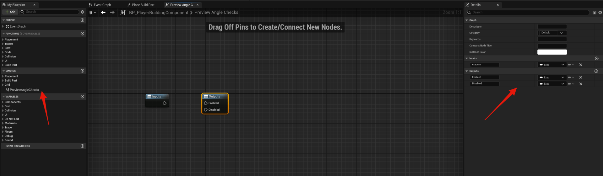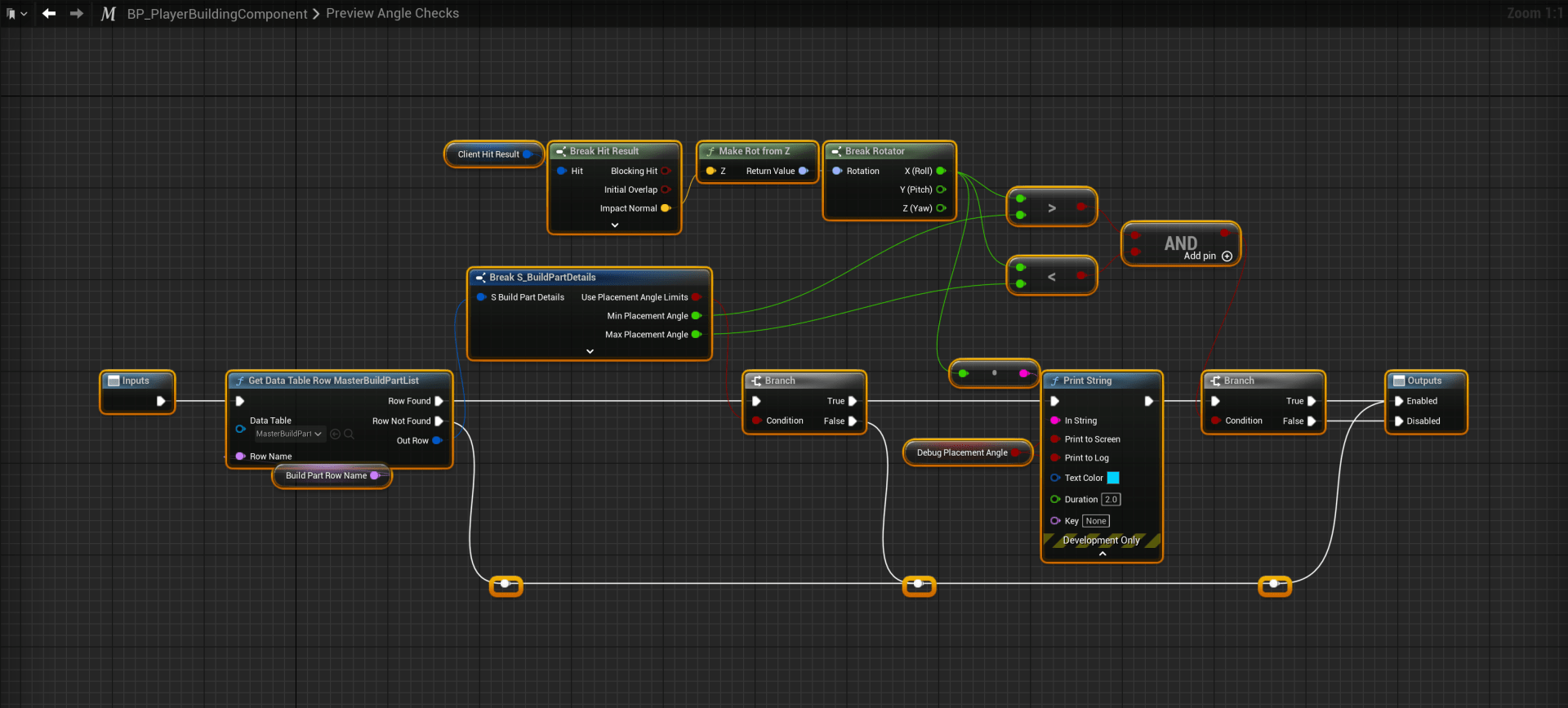 Next open the BP_PlayerBuildingComponent and add a new variable called DebugPlacementAngle set its type to Boolean. Then tick on Instance Editable and set its Category to Debug