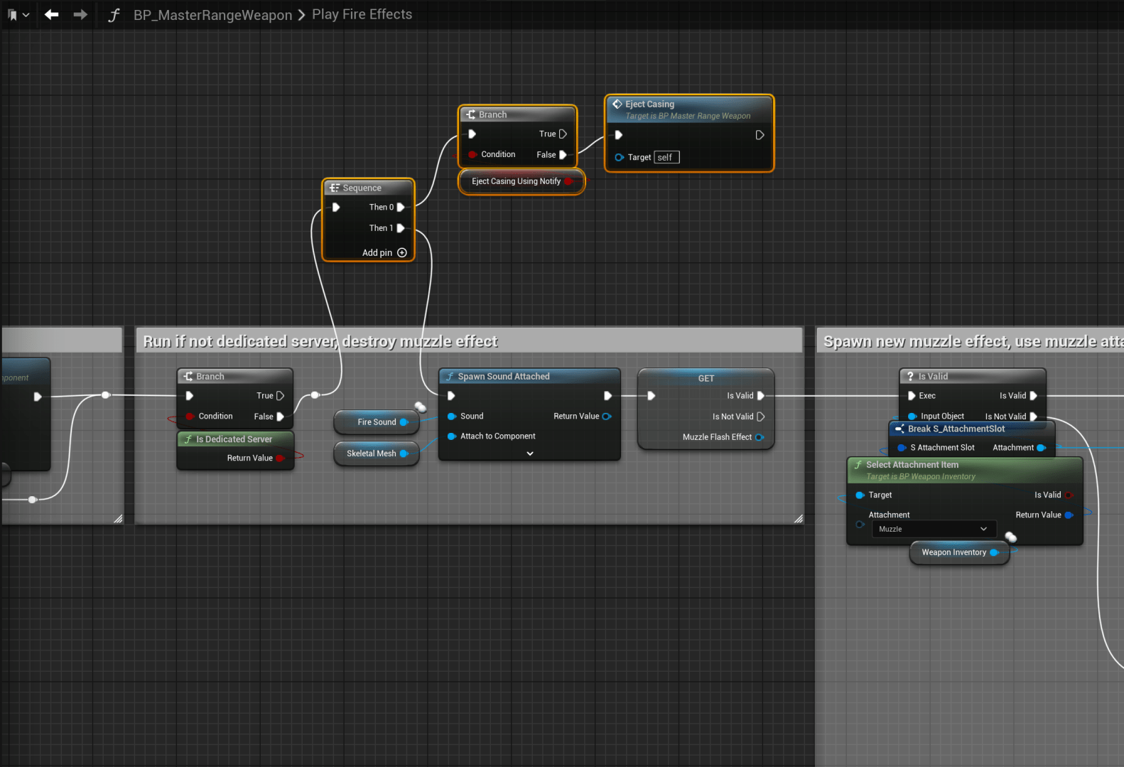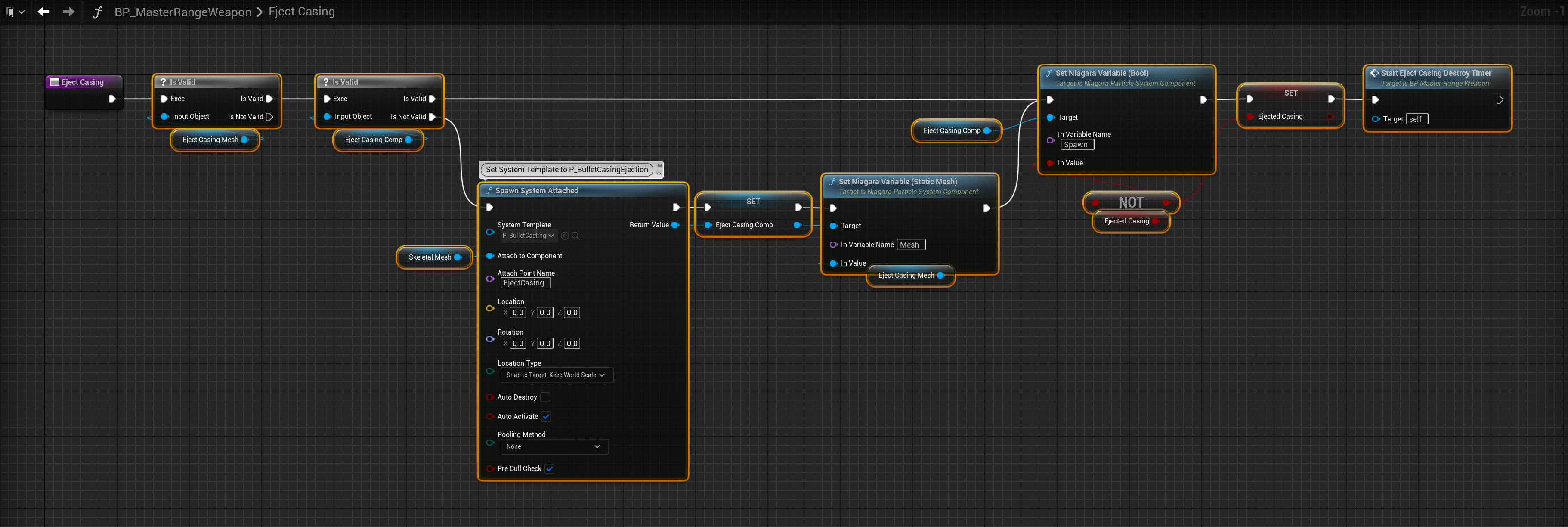Then add the nodes shown below to the EjectCasing function you created earlier.