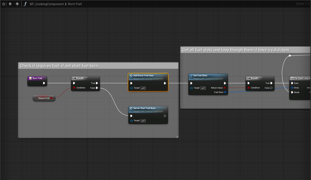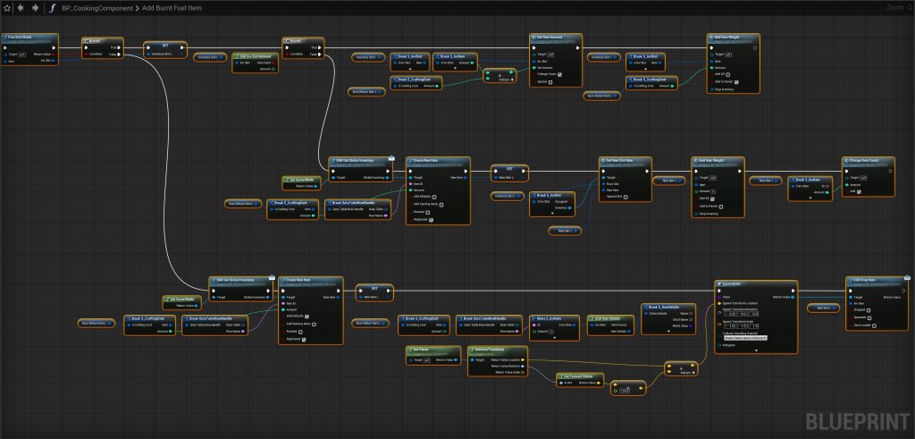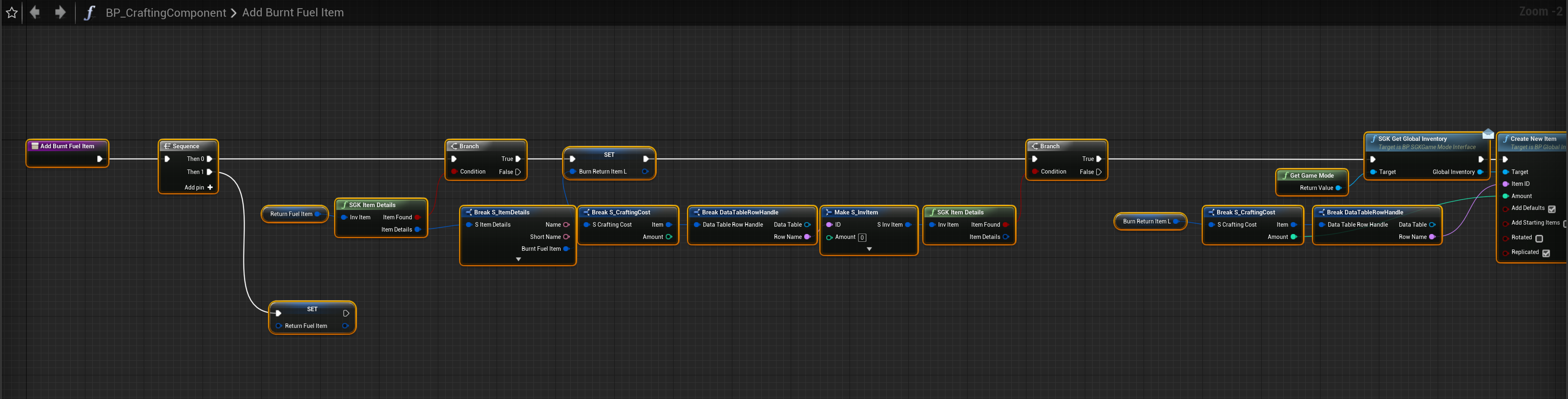 Next create a new function called AddBurntFuelItem then create a new local variable called BurnReturnItemL and set its type to S_CraftingCost, then create another local variable called NewItemL and set its type to S_InvItem. Then create another local variable called RemainingInvItemL and set its type to S_InvItem.