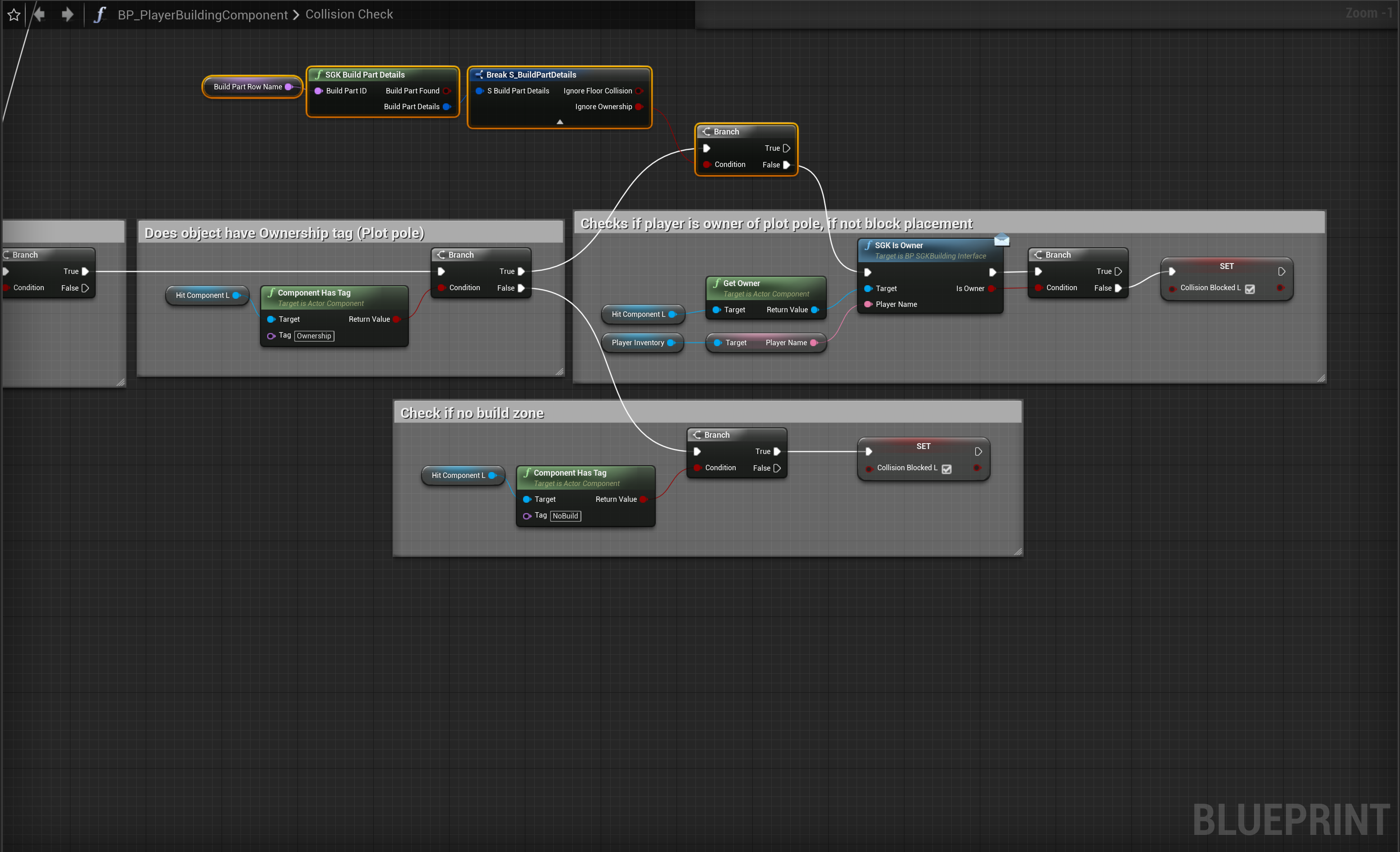 Next go to the BP_PlayerBuildingComponent and add the highlighted nodes shown in the image below, location at the top of the screenshot. Then copy the video.