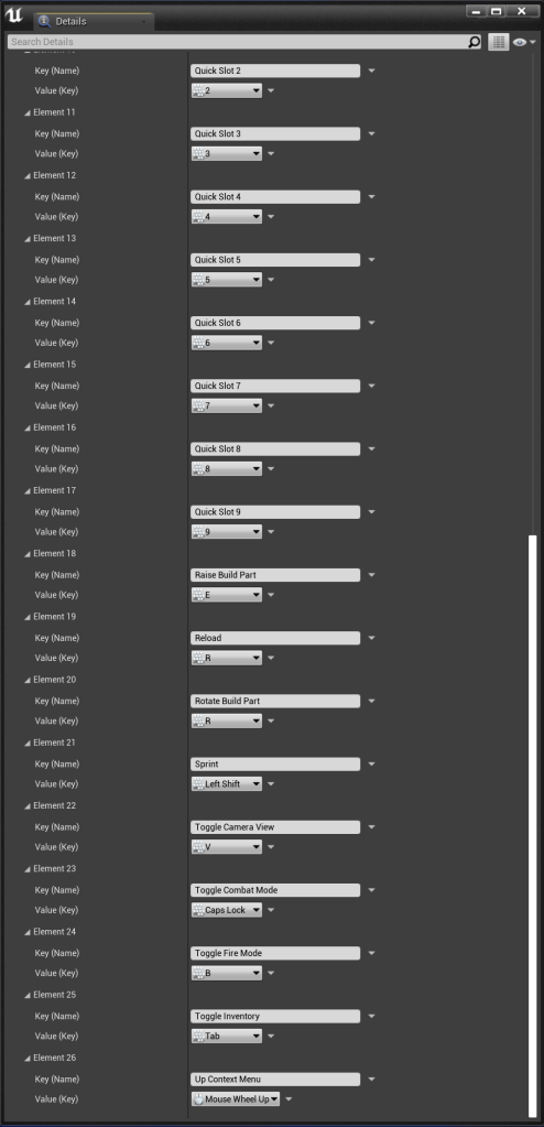 You have now finished, if you have added your own controls to the project you can add those here as well. If you want to assign a different key to any of the default values from the above image you can change that as well.