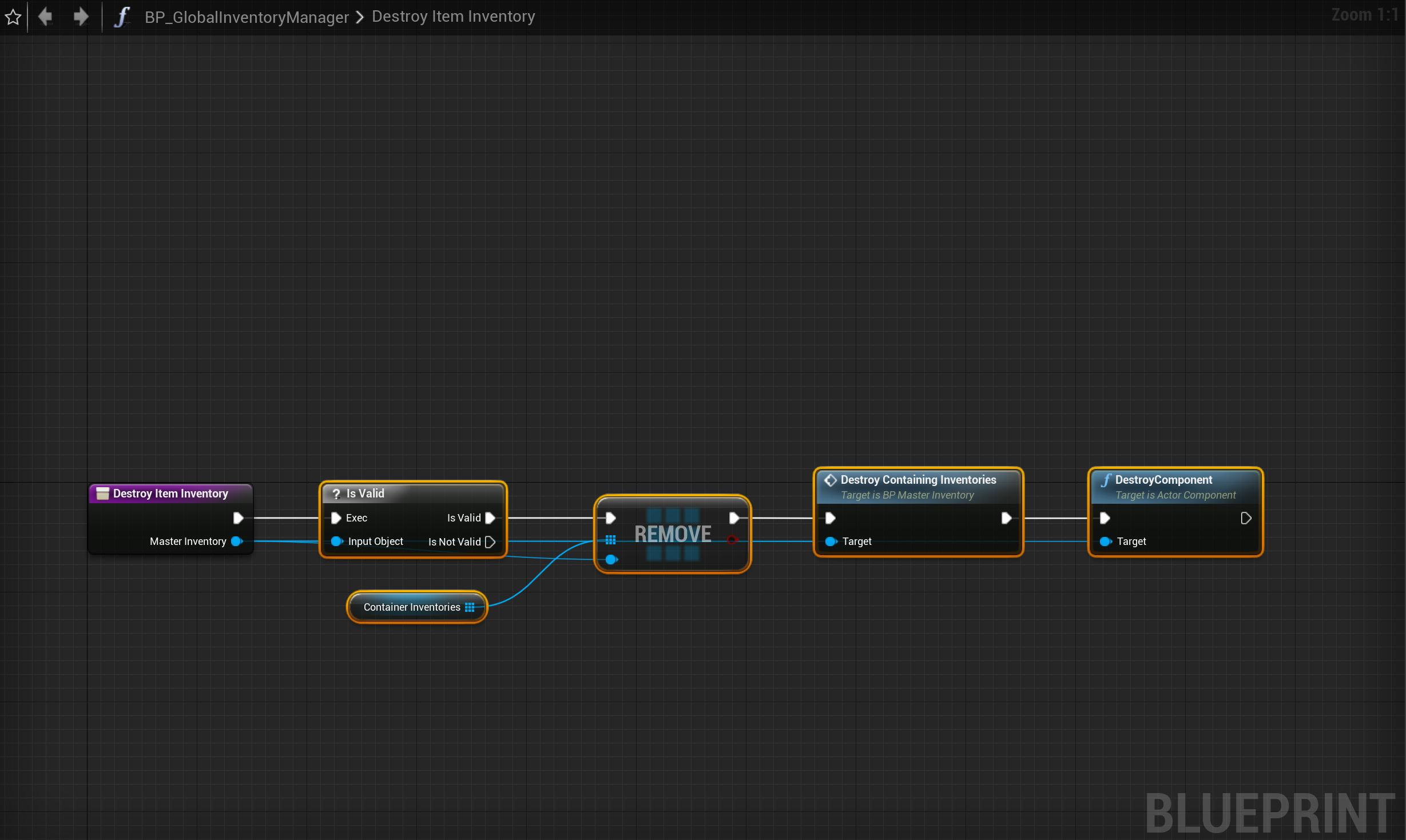 Next go to the BP_GlobalInventoryManager and create a new function called DestroyItemInventory then copy the image below.