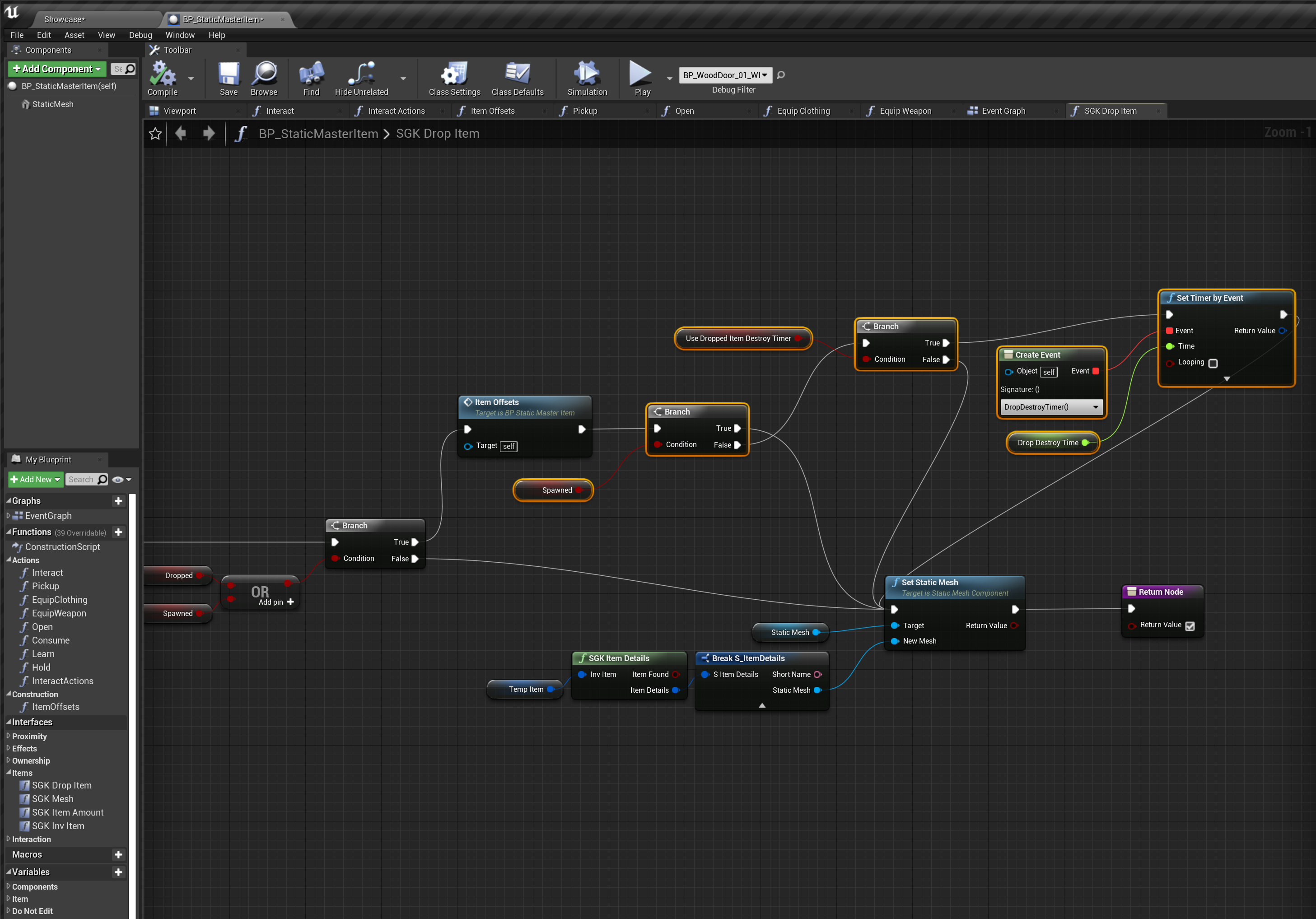 Go to the BP_StaticMasterItem and create a new variable called UseDroppedItemDestroyTimer and set its variable type to Boolean and tick on Instance Editable. Next create another variable called DropDestroyTime and set its variable type to Float and set its Default Value to 1000 and tick on Instance Editable.