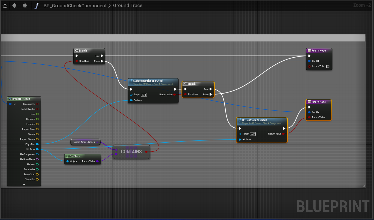 You can also enable the Trace Visibility in the ground check component’s settings so you are able to see where the trace is and what it is hitting if you are not getting the results you expect.