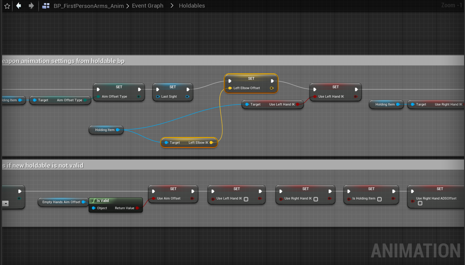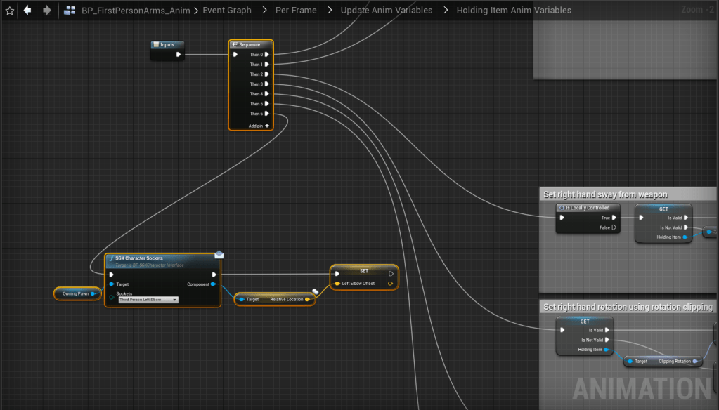 Next go to the BP_FirstPerson_Anim and create a variable called LeftElbowOffset and set its type to Vector. Then copy the video below.