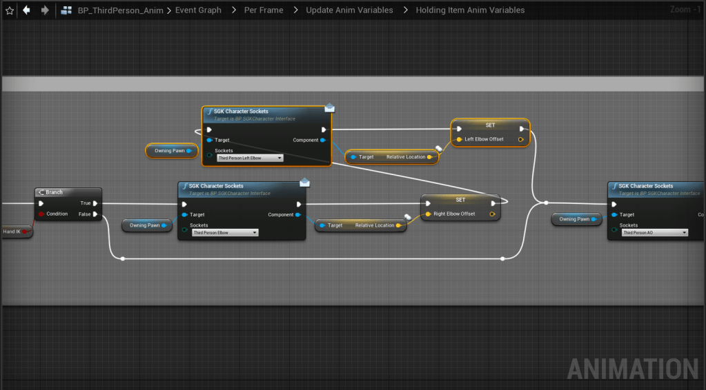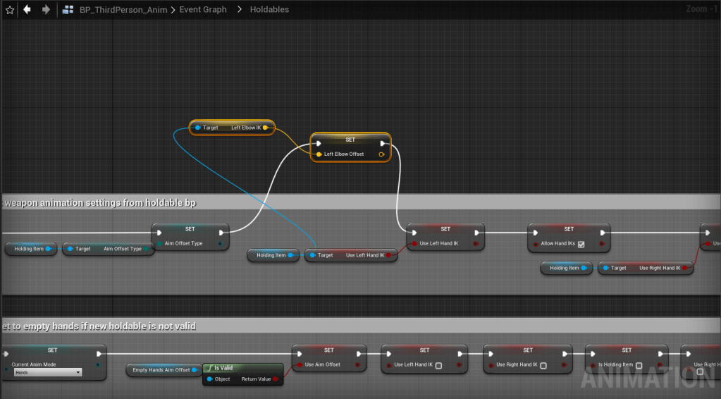 Next go to the BP_ThirdPerson_Anim and create a variable called LeftElbowOffset and set its type to Vector. Then copy the video below.
