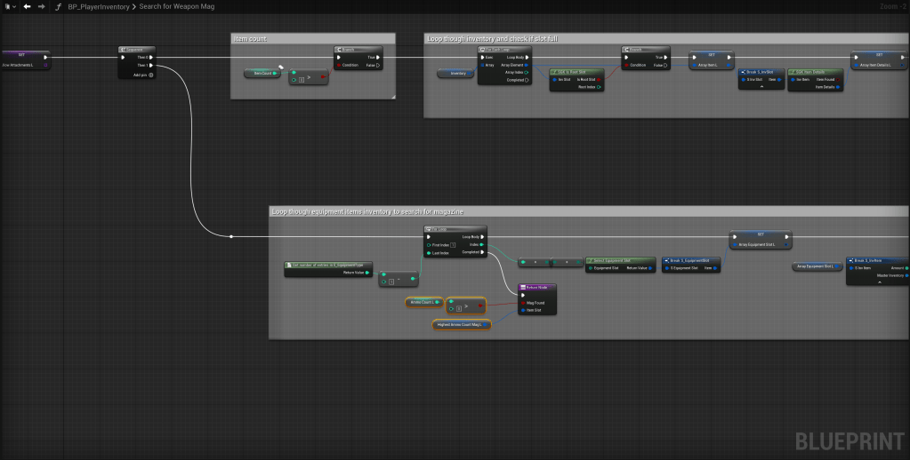 Go to the SearchForWeaponMag function in the BP_PlayerInventory component and create a new Local Variable called HighestAmmoCountMagL and set its type to S_InvSlot.