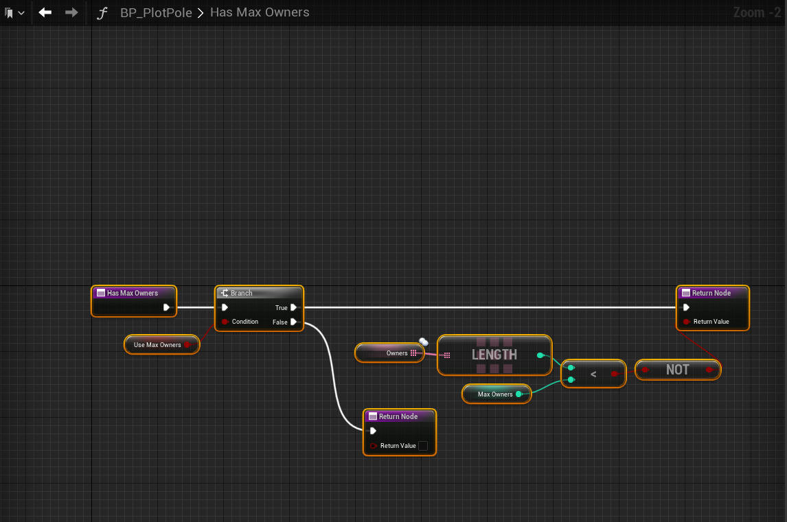 Go to the BP_PlotPole and create a new function called HasMaxOwners and add a new output set to Boolean called ReturnValue.