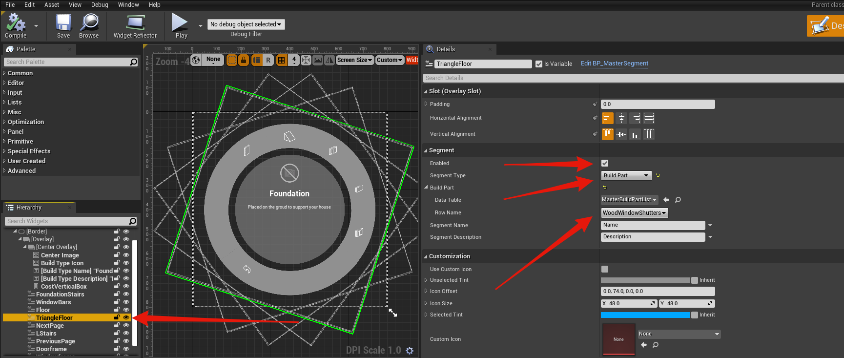 Next go to the BP_BuildingMenuPageTwo and select the TriangleFloor window segment and set the settings shown in the image.