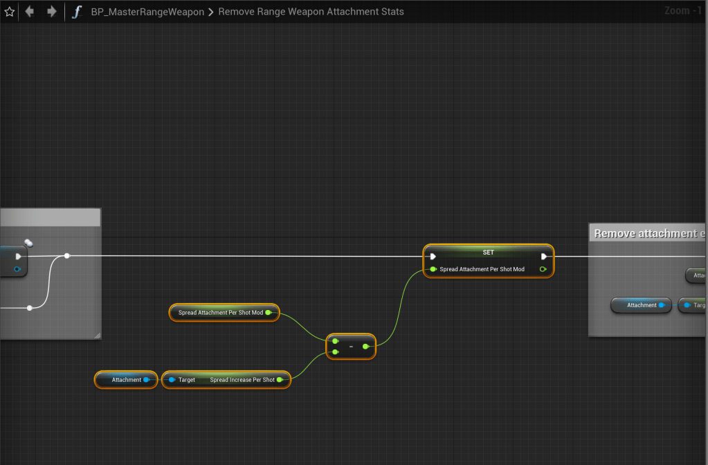 Go to the BP_MasterRangeWeapon and create a new variable called SpreadAttachmentPerShotMod and set it to a Float type.