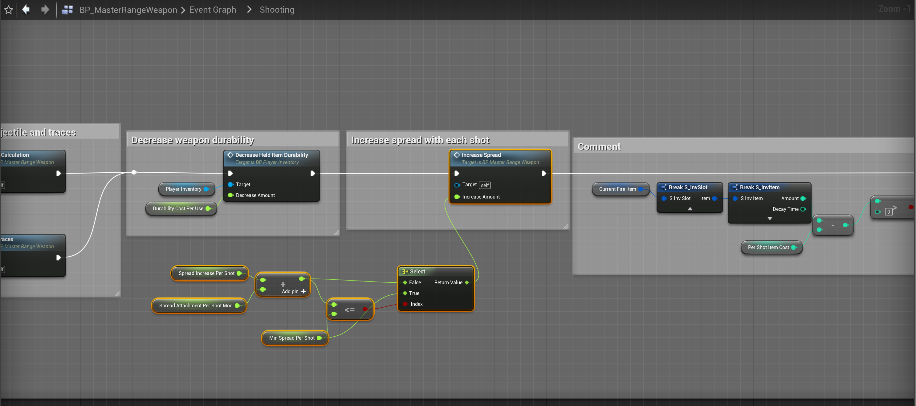 Go to the BP_MasterRangeWeapon and create a new variable called SpreadAttachmentPerShotMod and set it to a Float type.