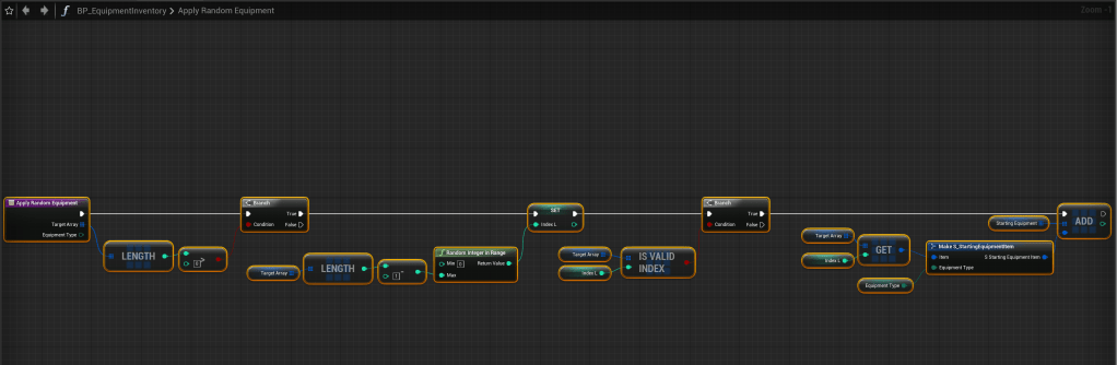 Next create a new function called RandomStartingEquipment and copy the image below.