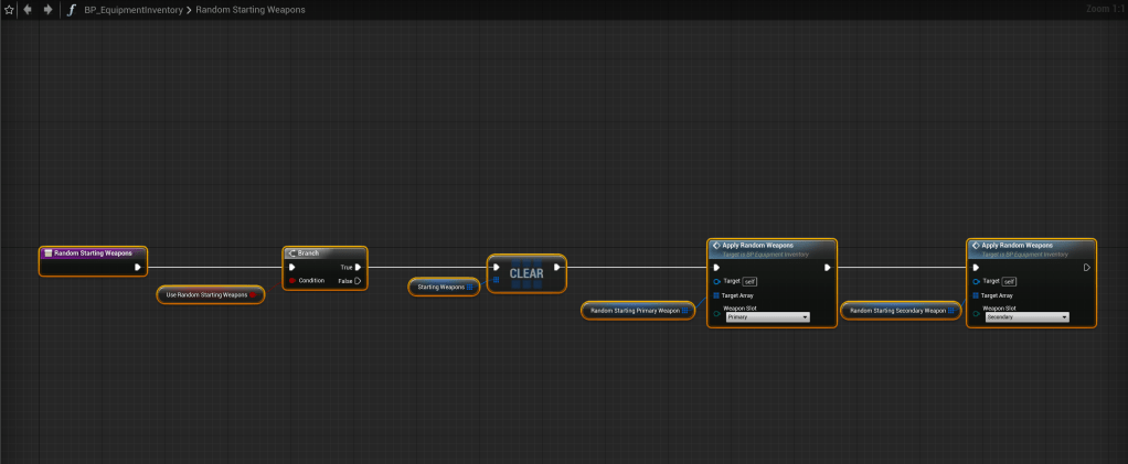 Next create another function called RandomStartingWeapons and copy the image below.