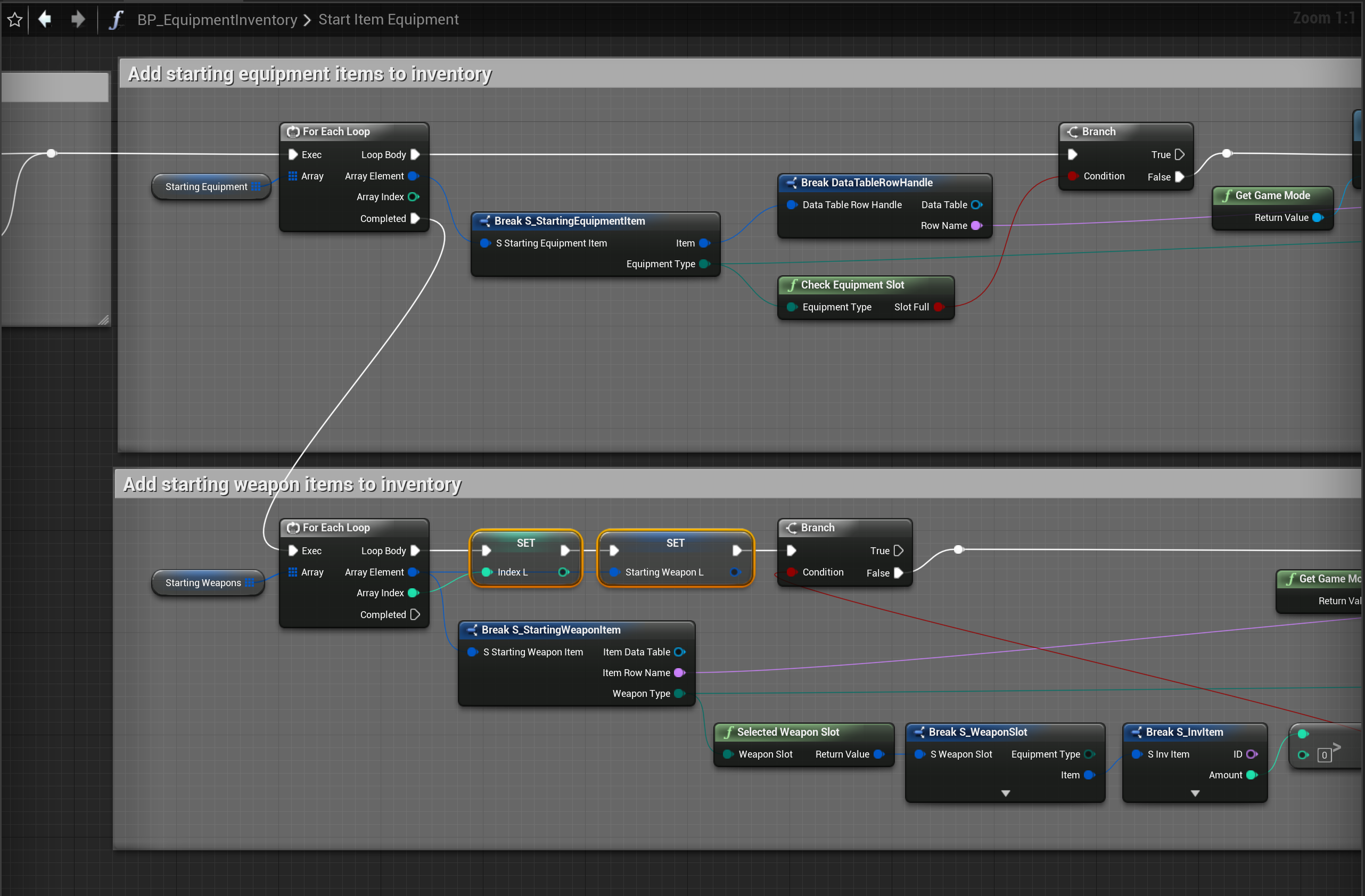 Create another local variable called StartingWeaponL and set its type to S_StartingWeapon. Then copy the image below.