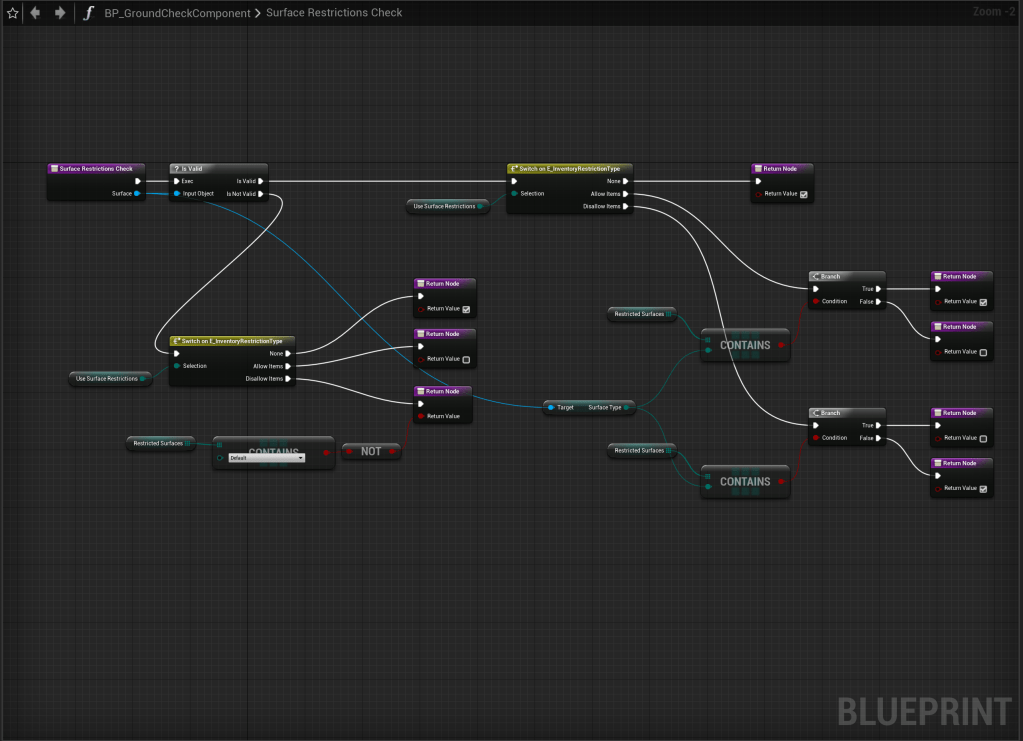 Go to the BP_GroundCheckComponent and create a new variable called UseSurfaceRestrictions and set its type to E_InventoryRestrictionType then tick Instance Editable.