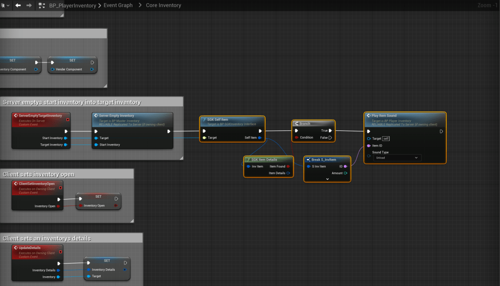 SGK V2 – Added Unload sound option Copy the video below Then go to the BP_PlayerInventory and compile. Add the highlighted nodes shown in the image below, location at the top of the image.
