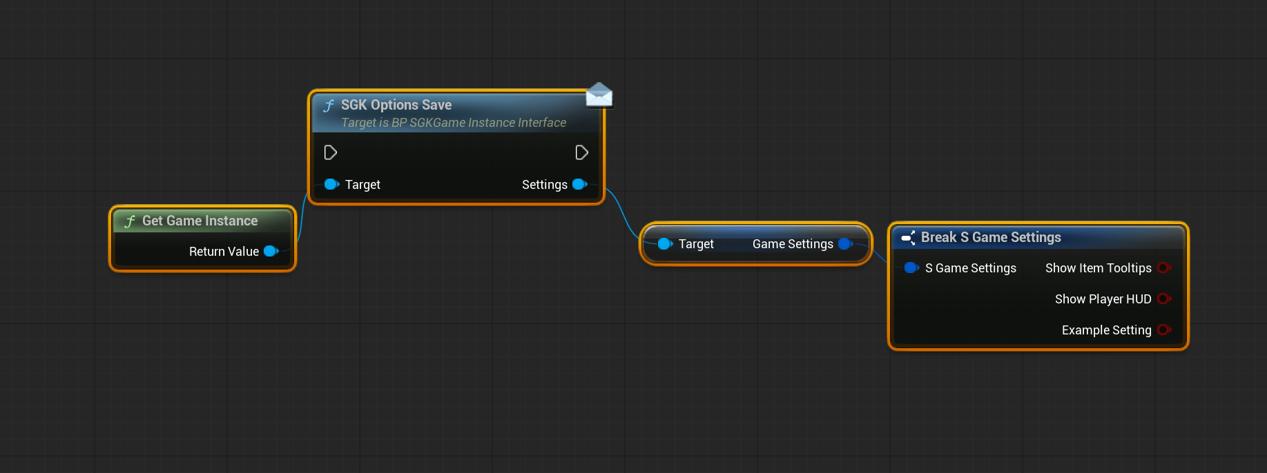 To access your setting in blueprint you can use the nodes below, keep in mind that these settings are client side so these nodes should only be used on client side code.