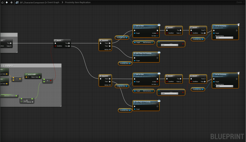 Make the code look like the image below in the BP_CharacterComponent in the Proximity Item Replicate collapsed node.