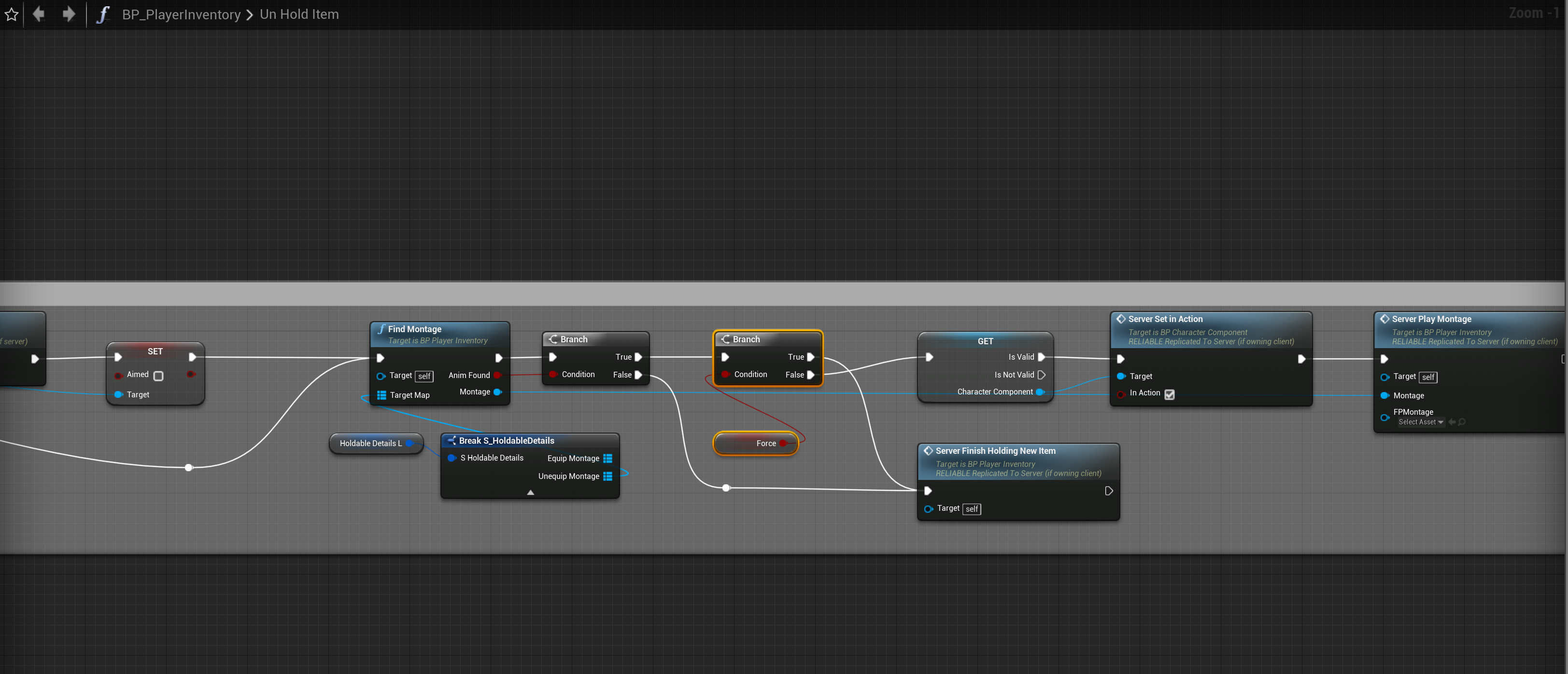 SGK V2 – Changed Unhold Item function Add a force un hold option to the function to skip unequip animation when removing holdable. Go to the Un Hold Item function and add a new Boolean input called Force then compile and copy the images below.