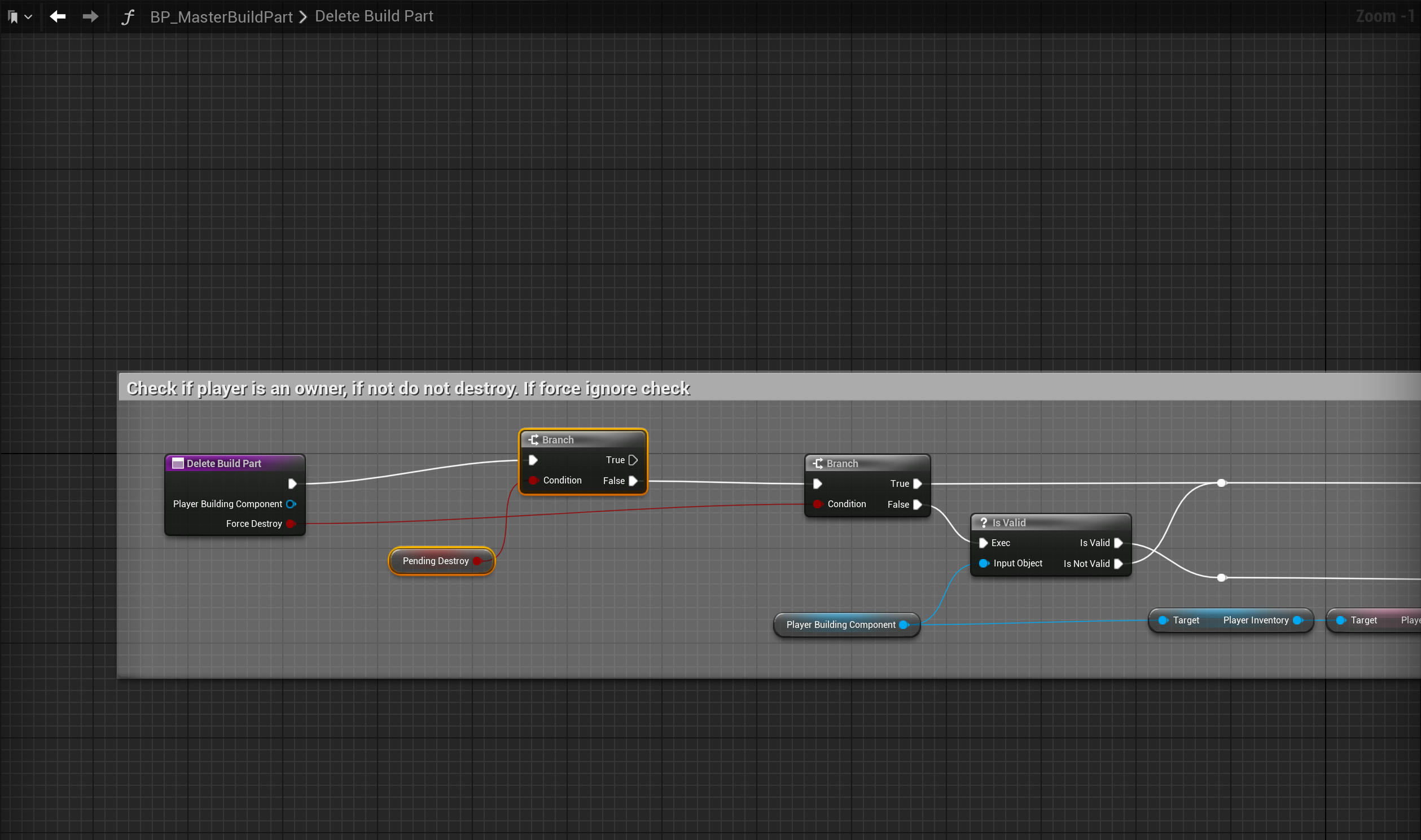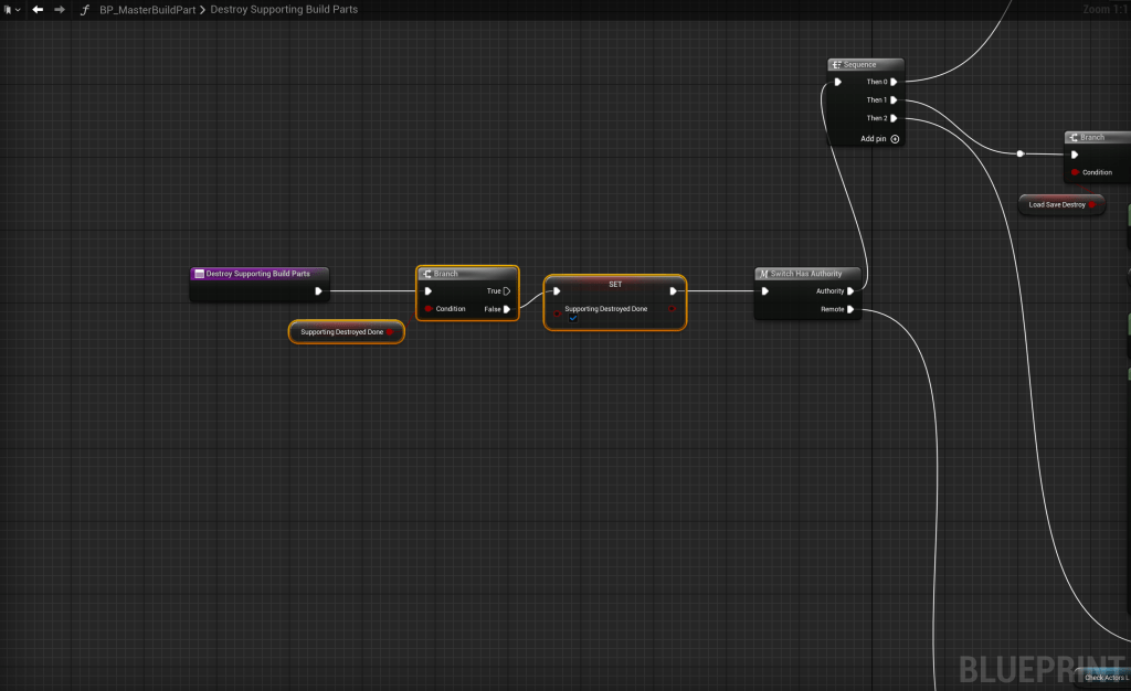 SGK V2 – Changes to Build Part destruction code Add the highlighted nodes shown in the image below, location at the top of the image. Go to the Destroy collapsed node in the BP_MasterBuildPart and copy the video below.