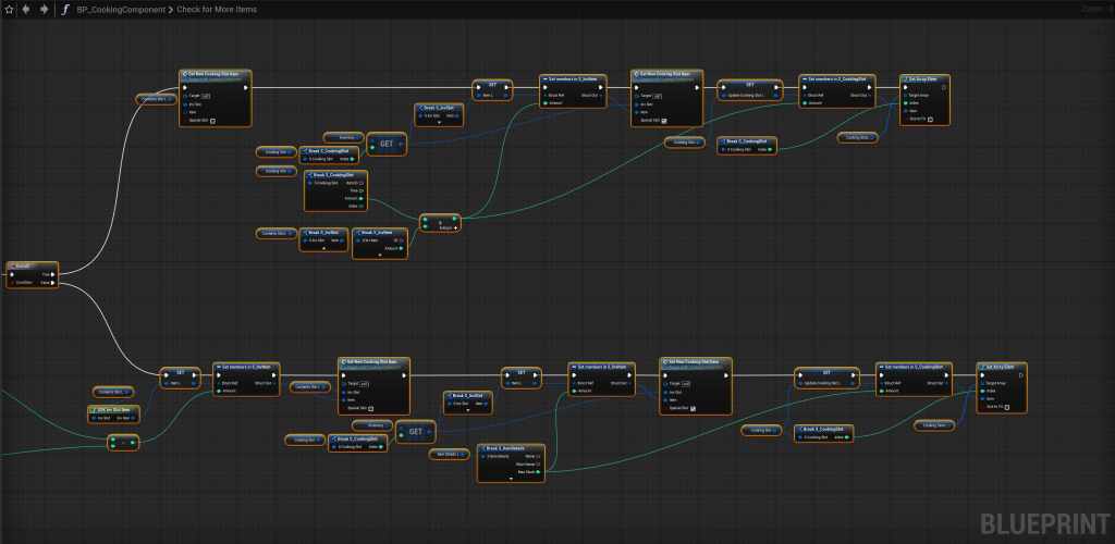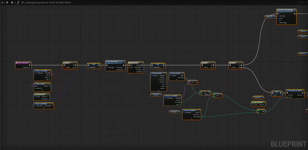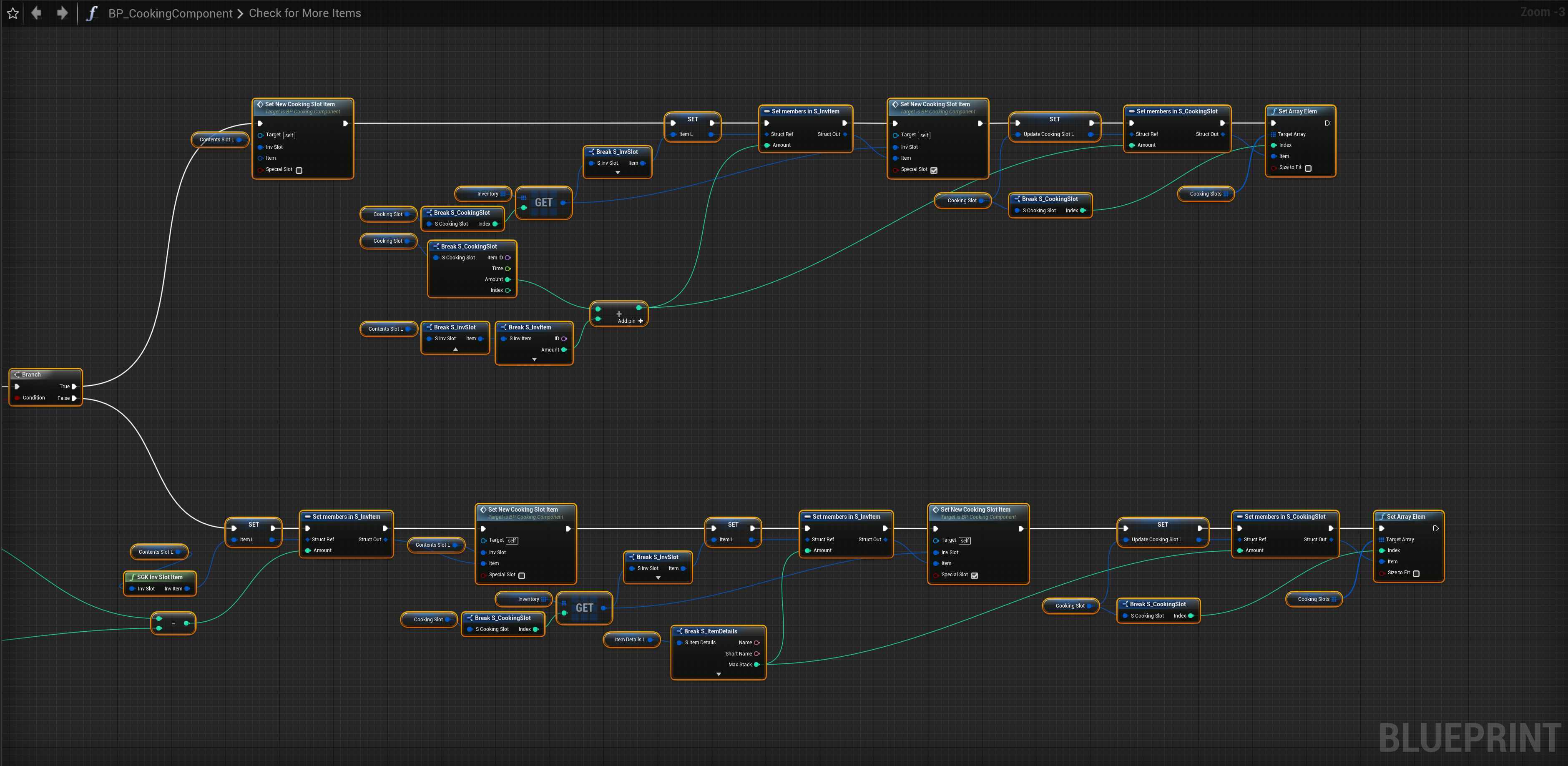 Go to the BP_CookingComponent and create a new function called CheckForMoreItems, add a new input called CookingSlot and set its type to S_CookingSlot. Next create the following local variables in the CheckForMoreItems function.
