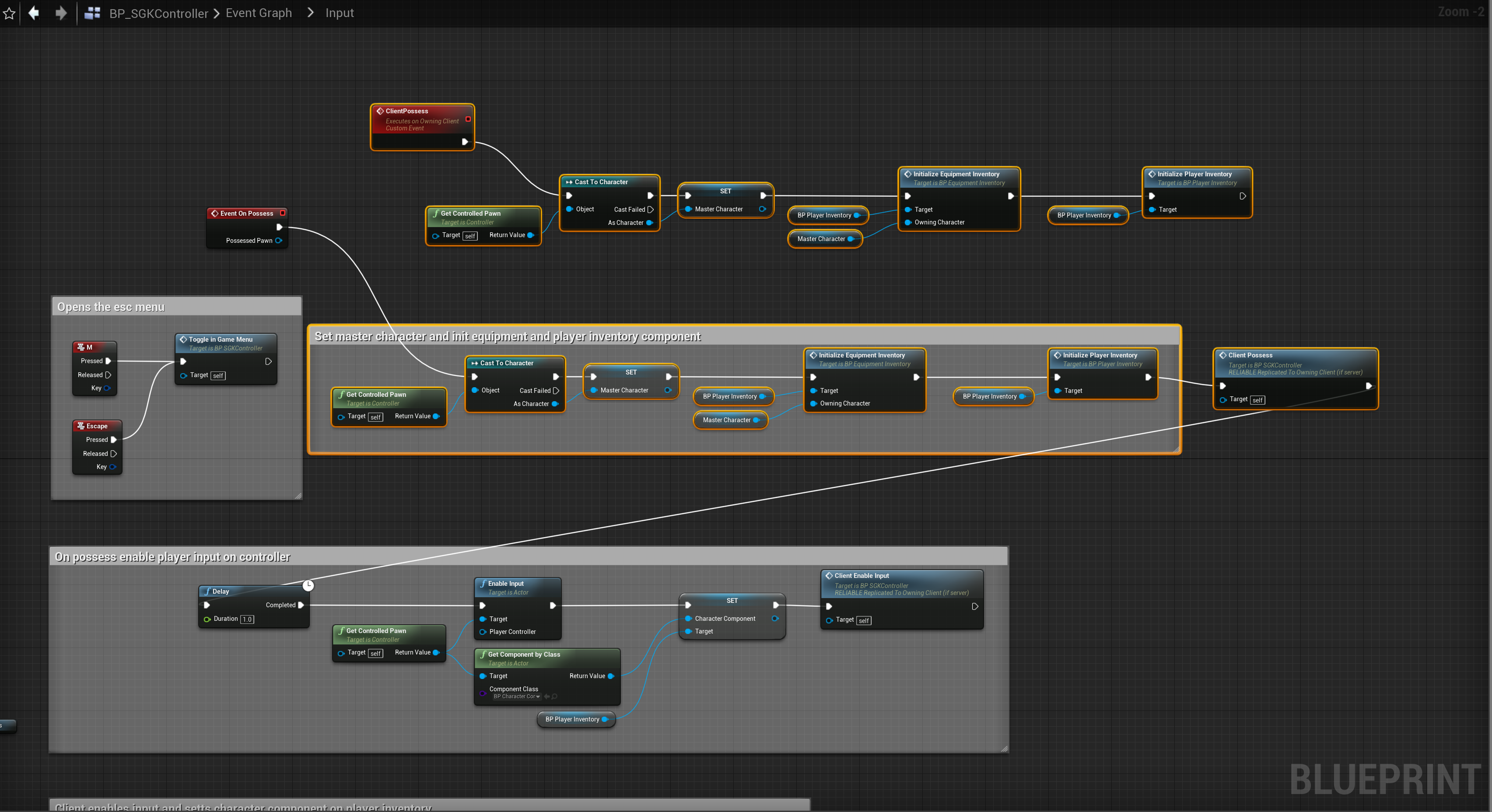 This fixes an issue where when loading a large level sometimes the character isnt spawned when begin play runs on the controller, so now we run the code on possess instead so the character is always spawned when the code is run.