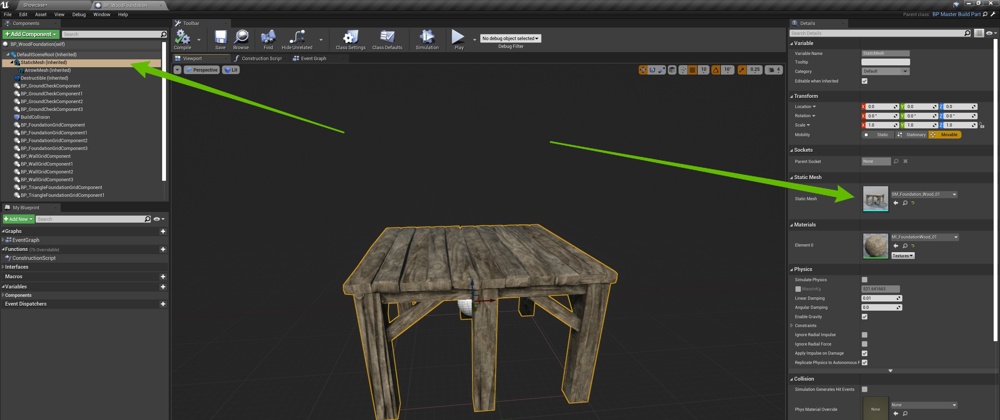 Size – The mesh should be the same size or close to the same size as the default meshes unless you are replacing all the grid build parts e.g. Walls, Floors, Foundation and stairs with new sizes, if not then you build parts wont fit together well in game. If you are changing the sizes of the meshes you may also need to change the grid sizes and locations. To change a grid location select the grid component inside the build part blueprint and simple move it in the viewport. To change its size check out the guide linked below for more info on gird components.