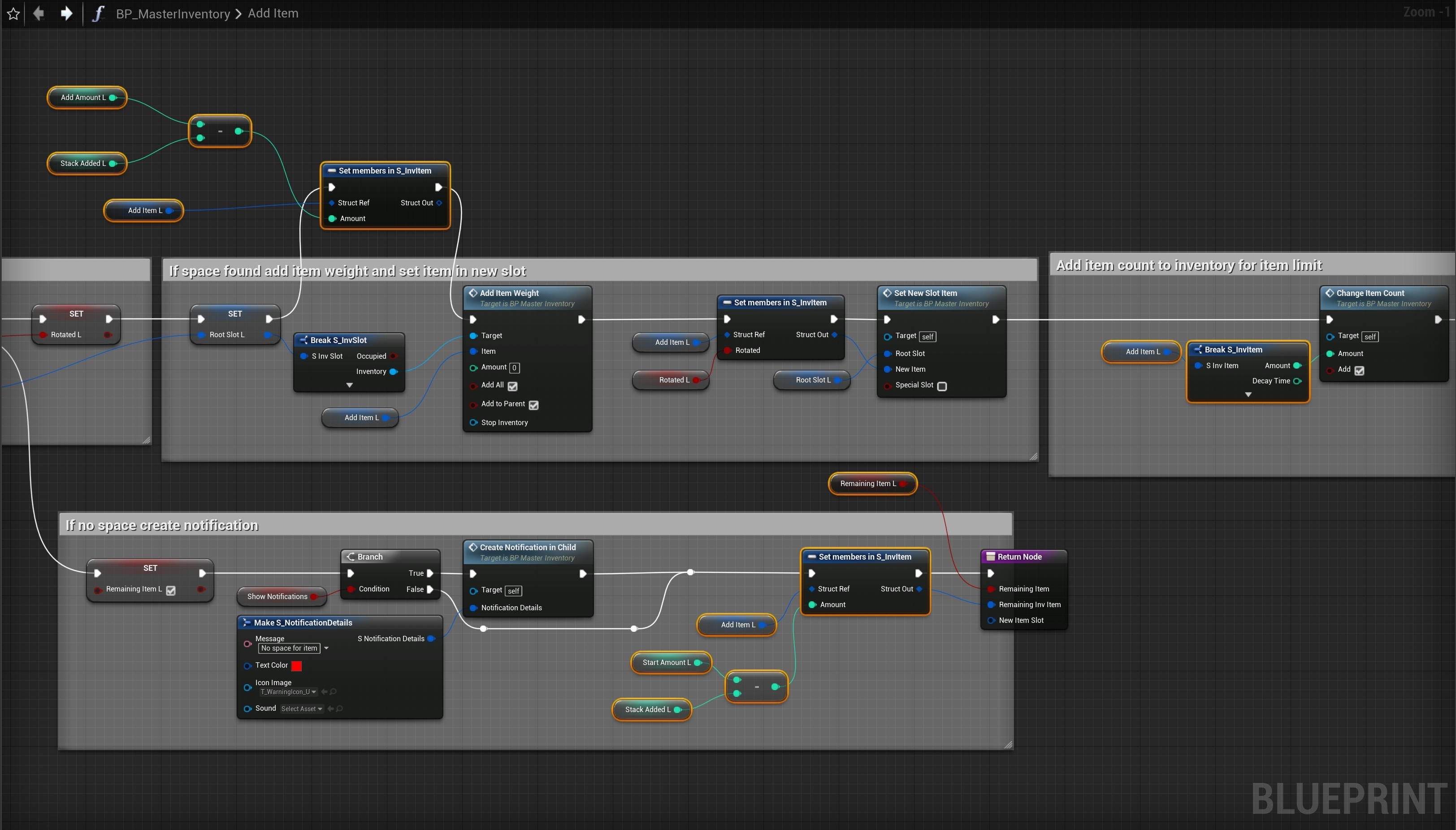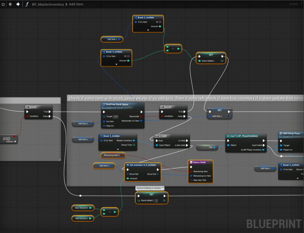 Next create a new local variable called Stack Added L and set it to an Integer. You can add Local variables in the my blueprint panel under where normal variables are added.