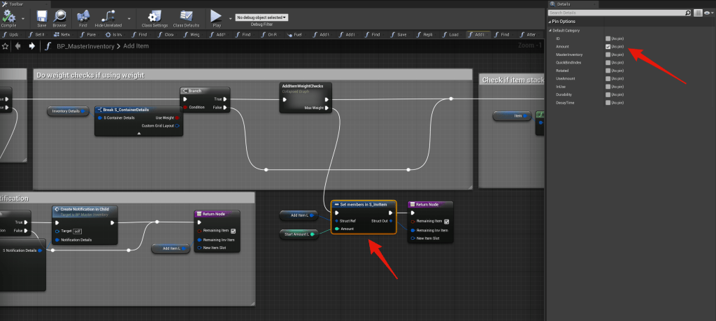 In the below image to add the Amount pin to the Set Memebers node in the images below select the node and tick on amount in the details panel.