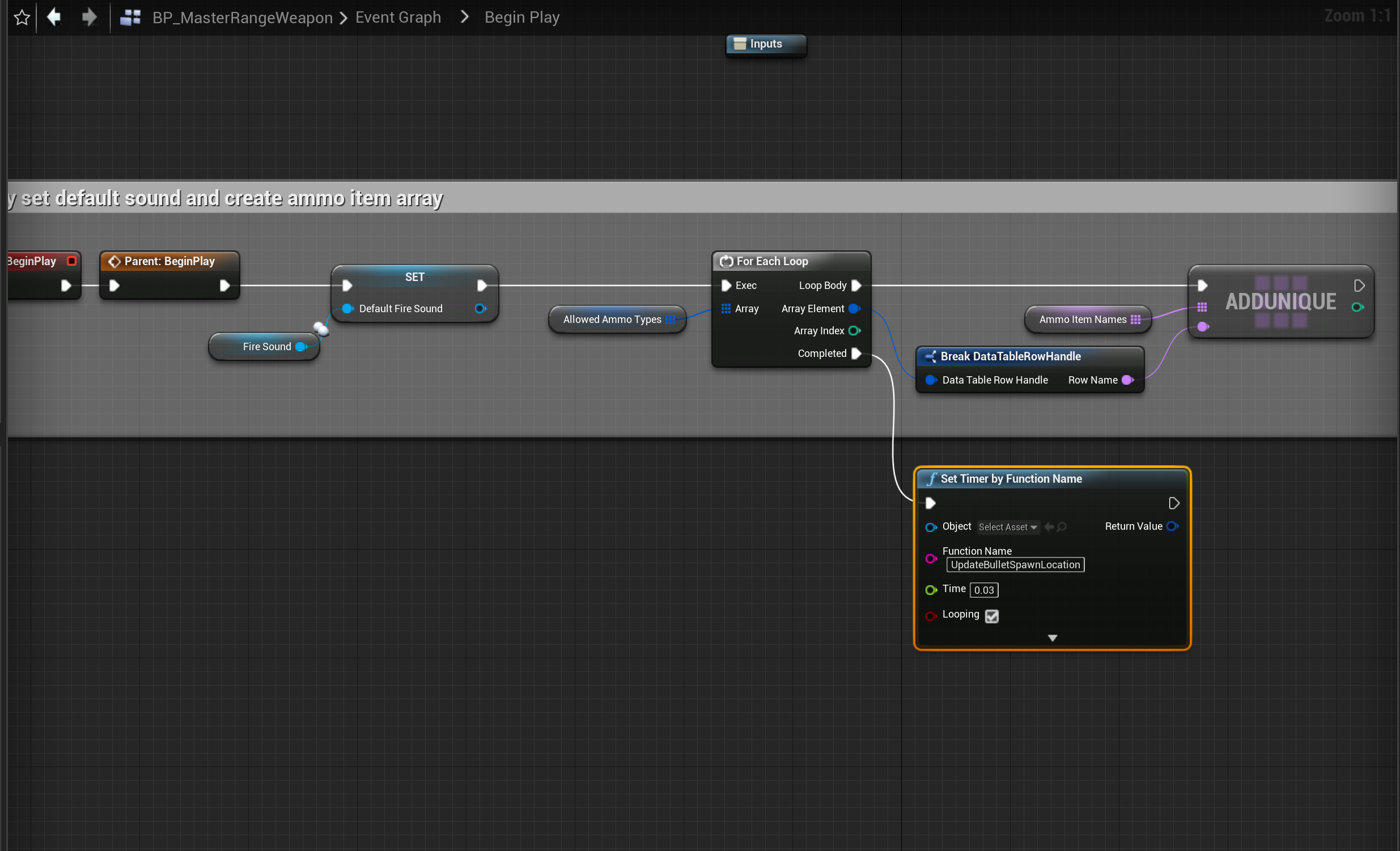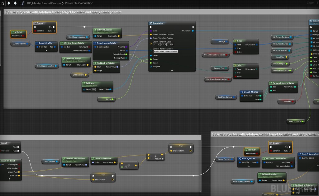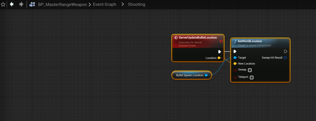 Next create a new function in the BP_MasterRangeWeapon called UpdateBulletSpawnLocation and copy the images below.