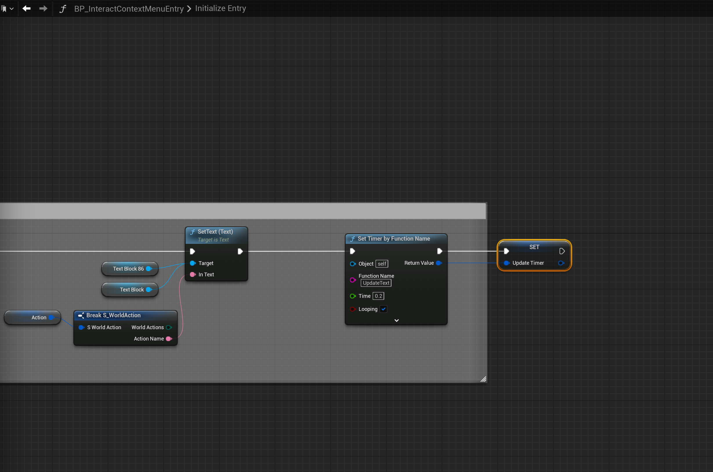 Go to the BP_InteractContextMenuEntry and create a new variable called UpdateTimer and set its type to TimerHandle