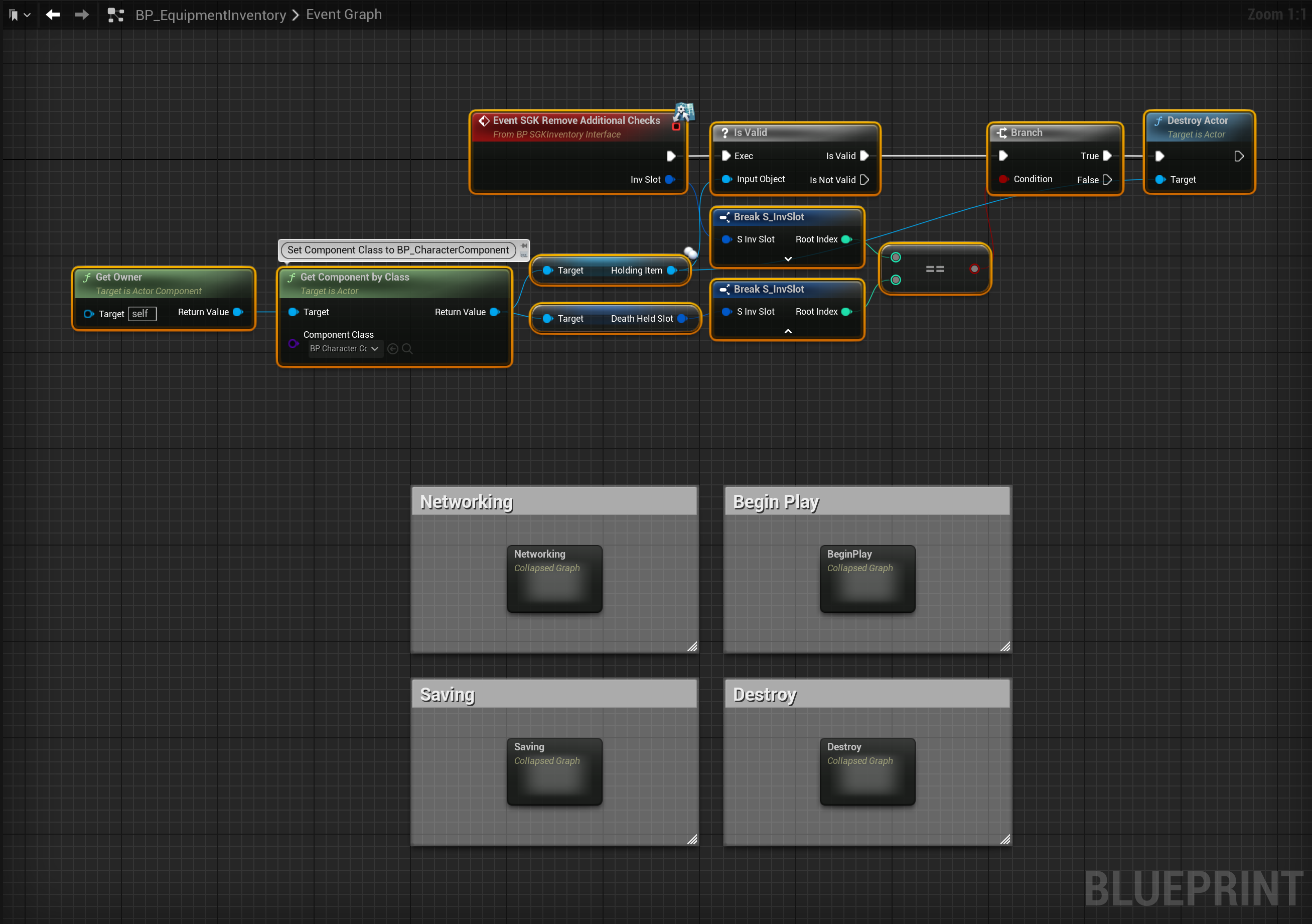 Next go to the BP_EquipmentInventory and add the highlighted nodes shown in the image below.