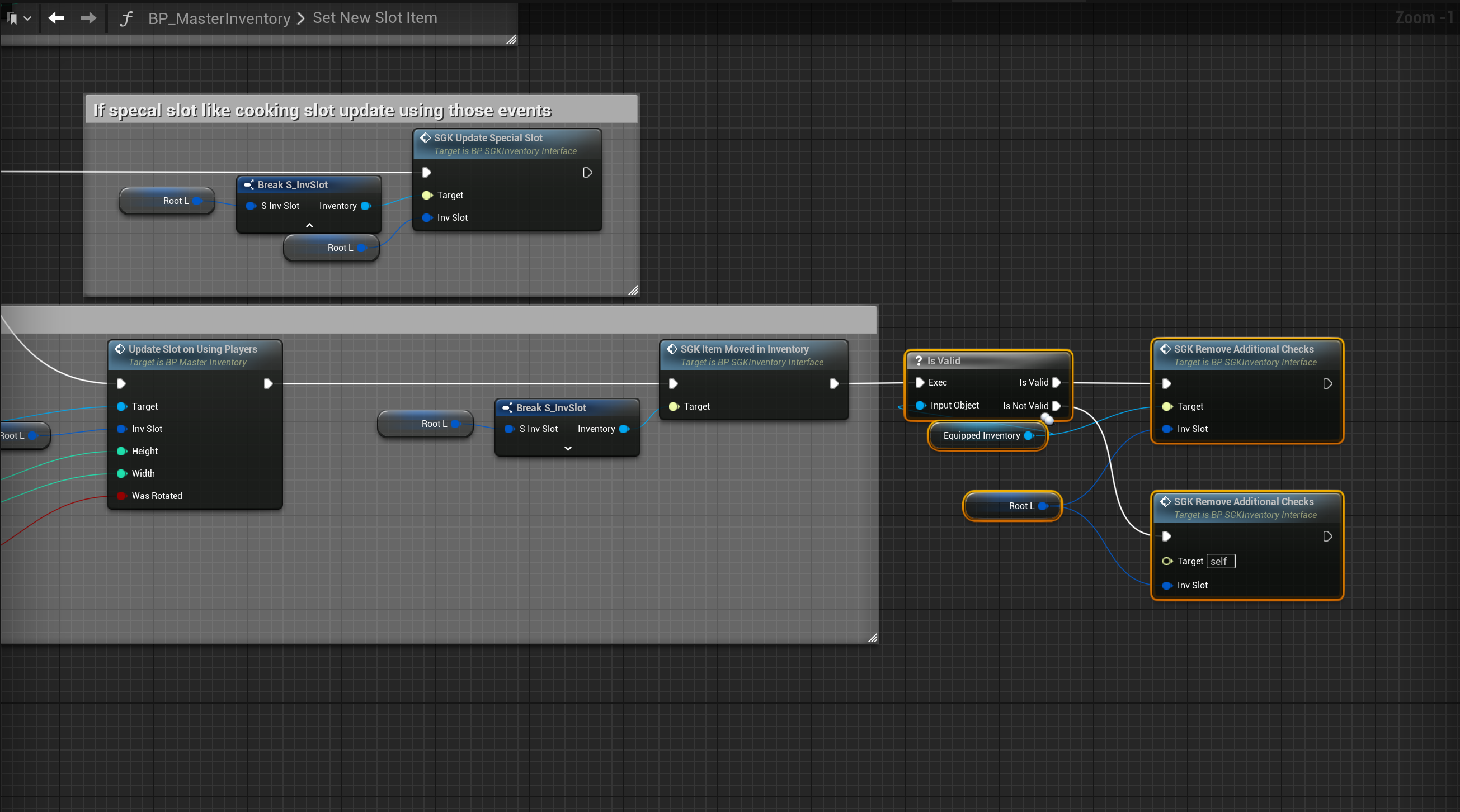 Then open the BP_MasterInventory go to the SetNewSlotItem and add the highlighted nodes shown in the image below.